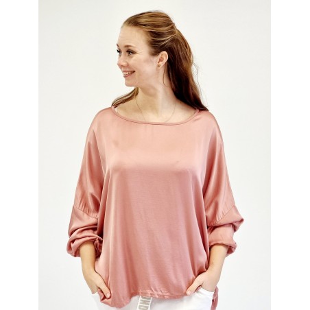 SALE gdfgdfg 133002 Bluse (2140C) silke med korte ærmer & længere bagpå. Viscose/Silke. Rosa 369,00 DKK 55,35 DKK