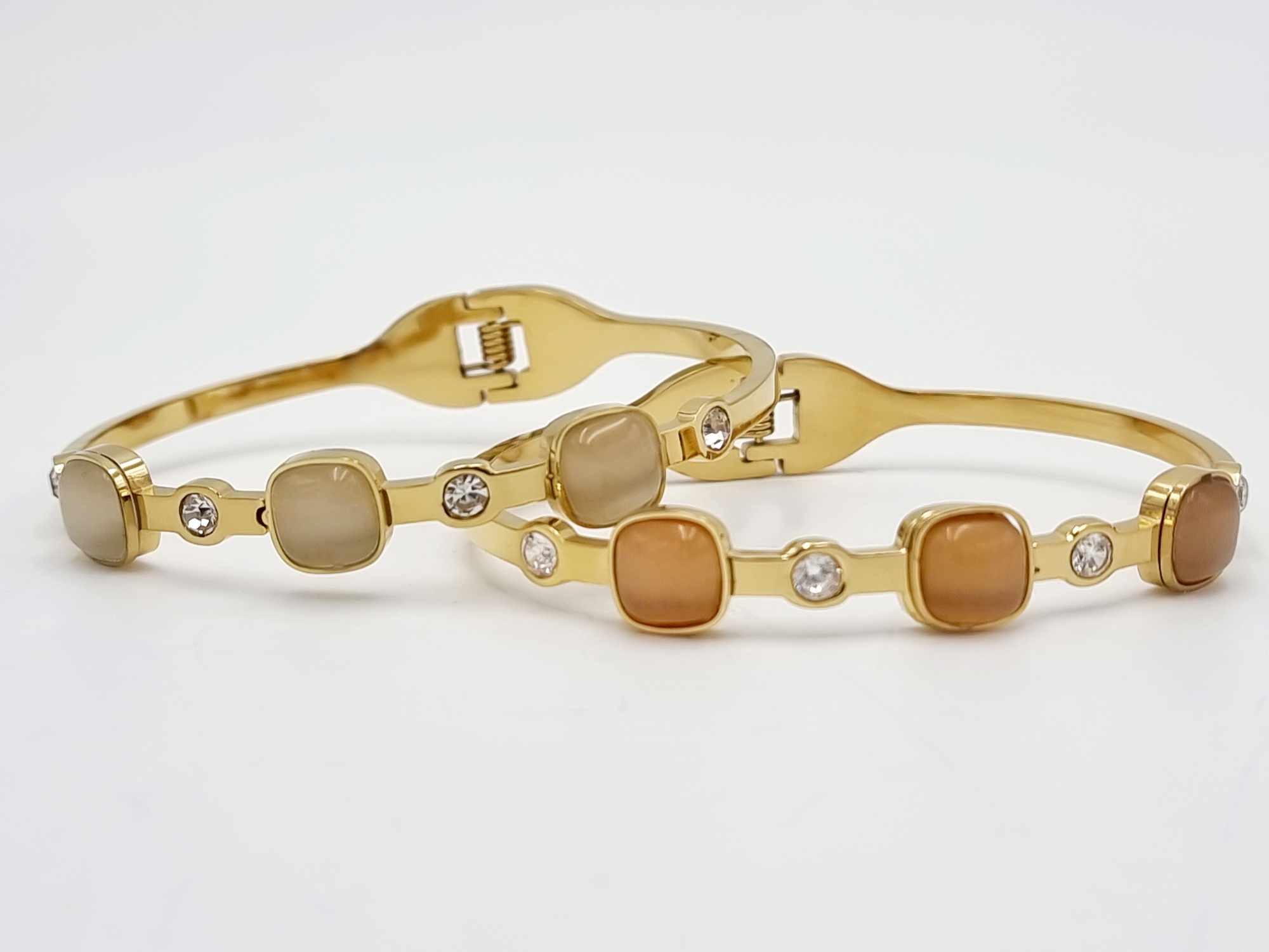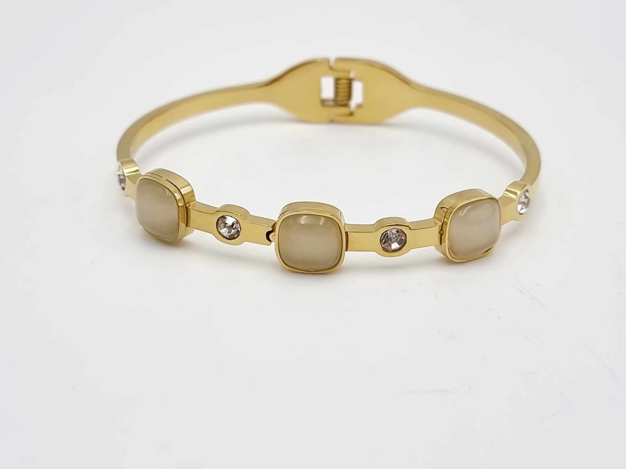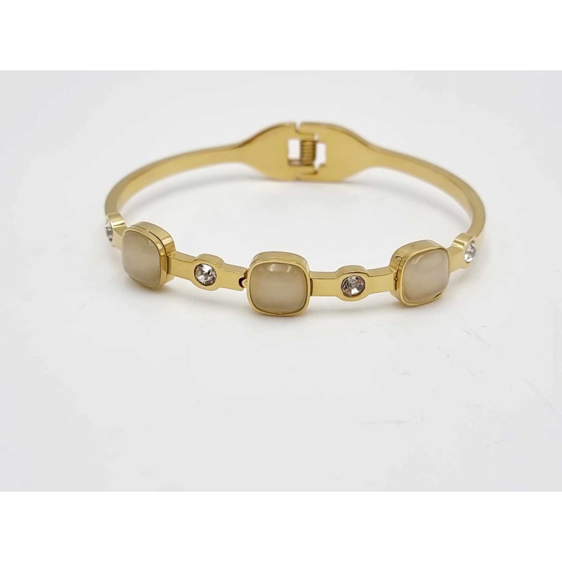 NYHED 522504 Armbånd bøjle med 3 sten & simili. Champagne