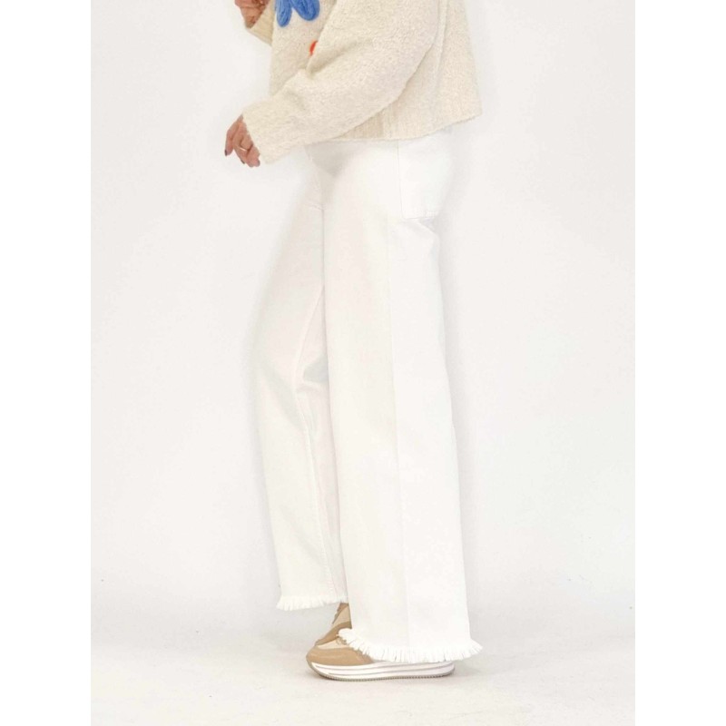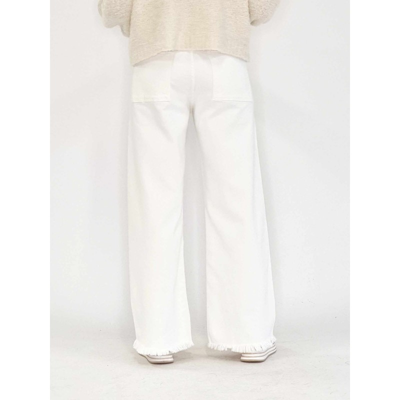 NYHED 133345 Kassebuks ( NCM109 ) højtaljet med frynser for neden. Hvid