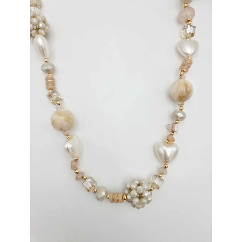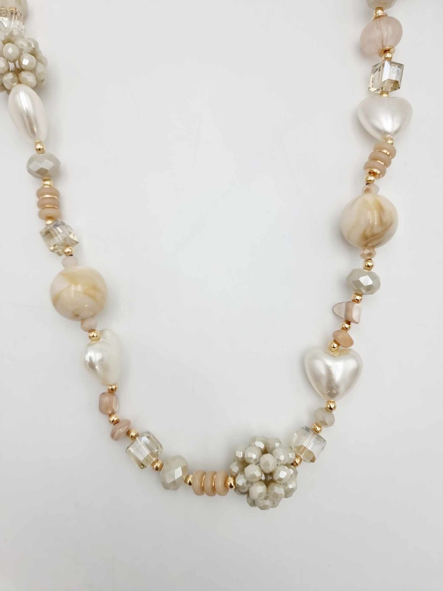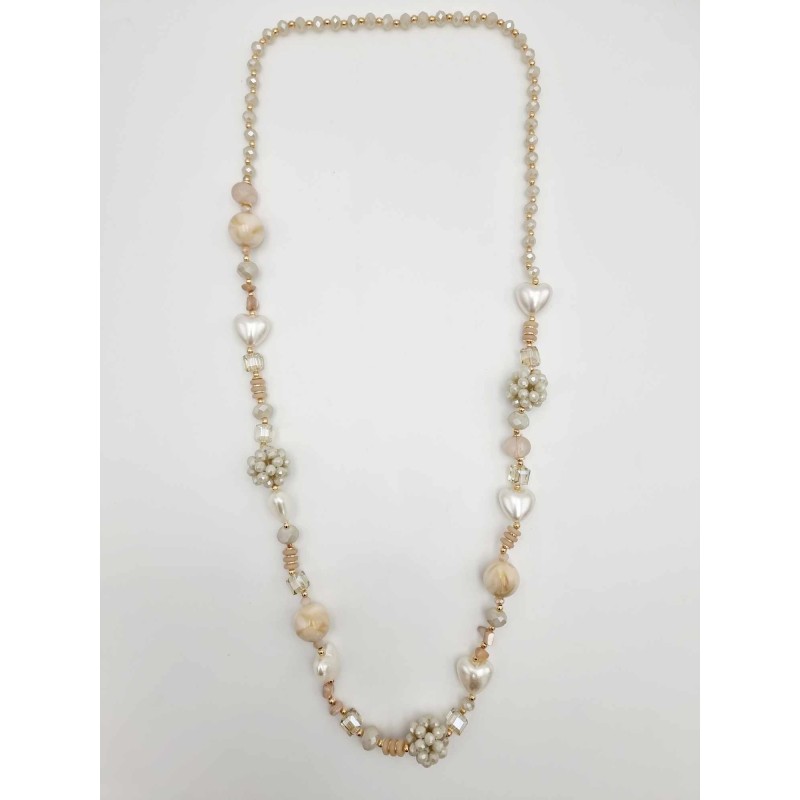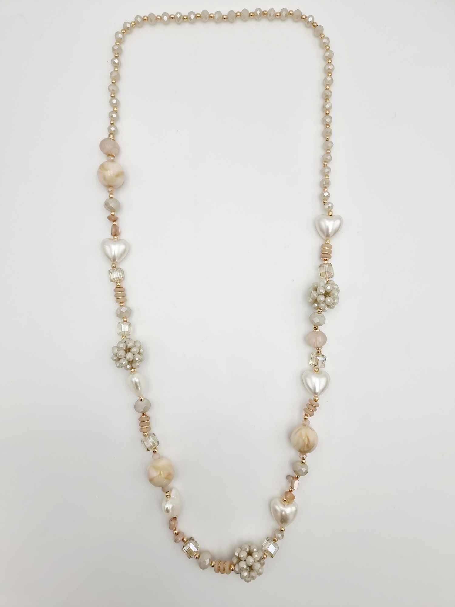 Stylenr 552413 Halskæde lang med perler & hjerter & kugler. Sand