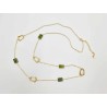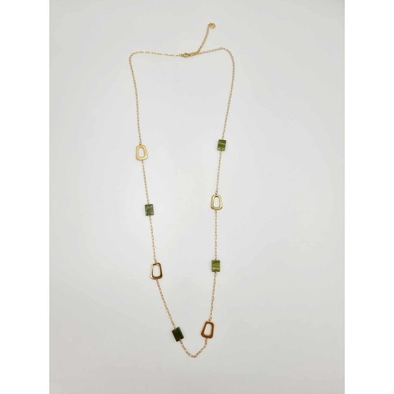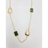 552417 Halskæde lang med firkanter & guldkæde. Grøn