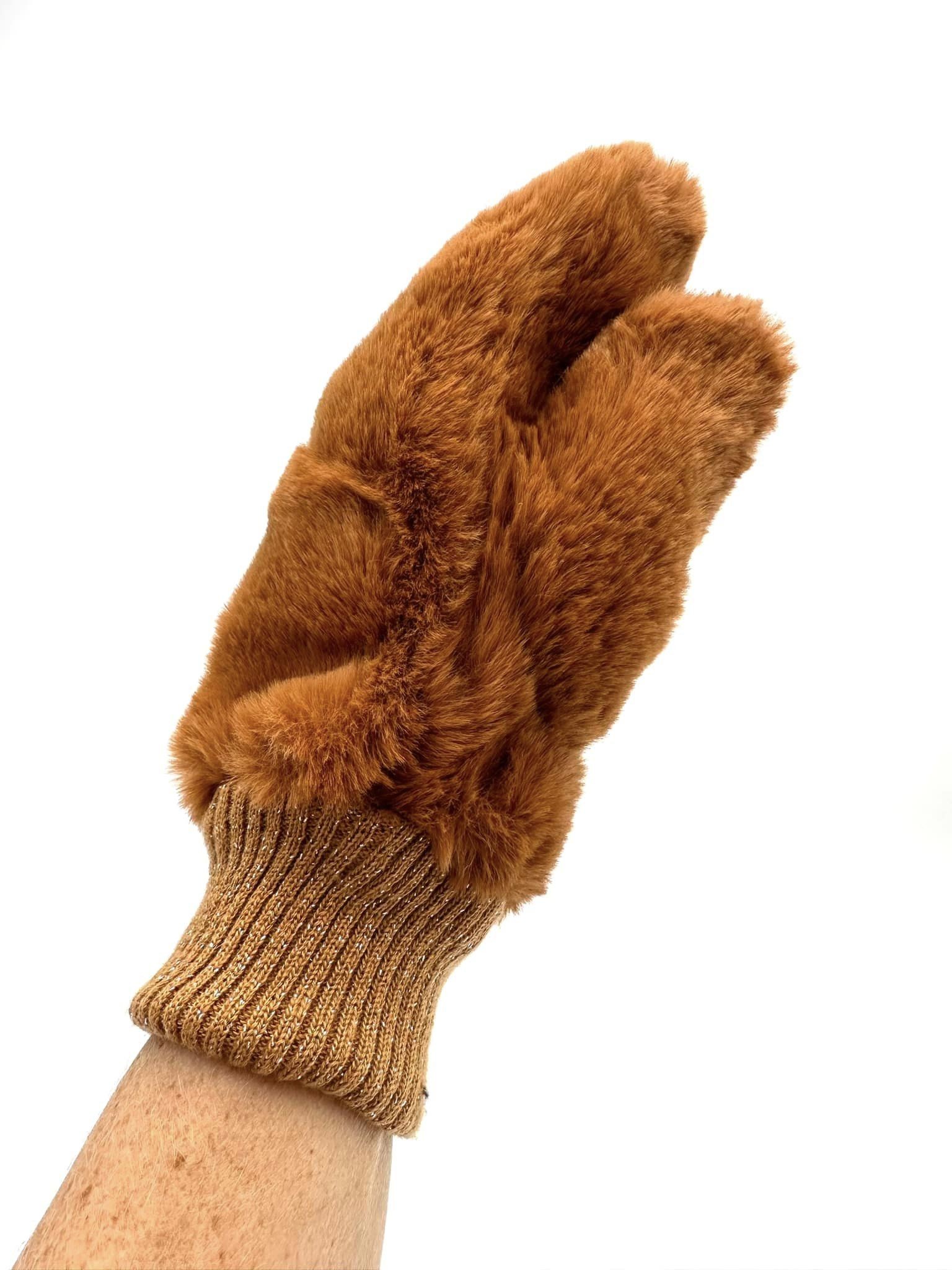 332300 Luffe ( 490117 ) fake fur og ribkant med sølvnister. One size. Camel