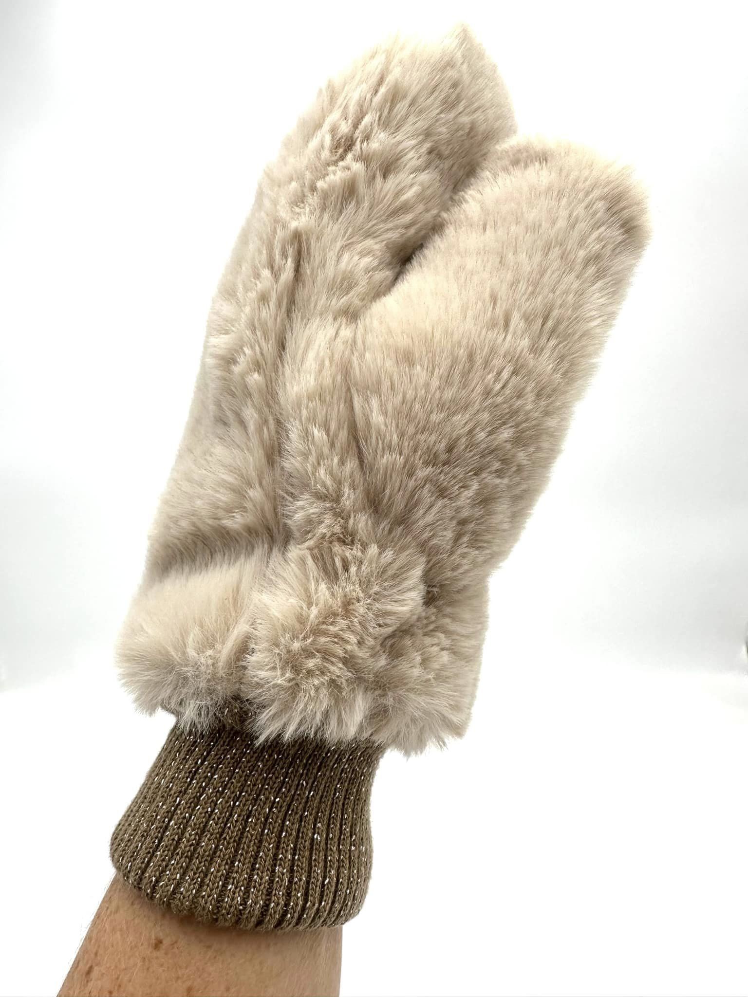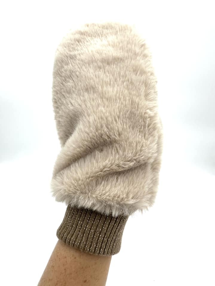 332300 Luffe ( 490117 ) fake fur og ribkant med sølvnister. One size. Beige