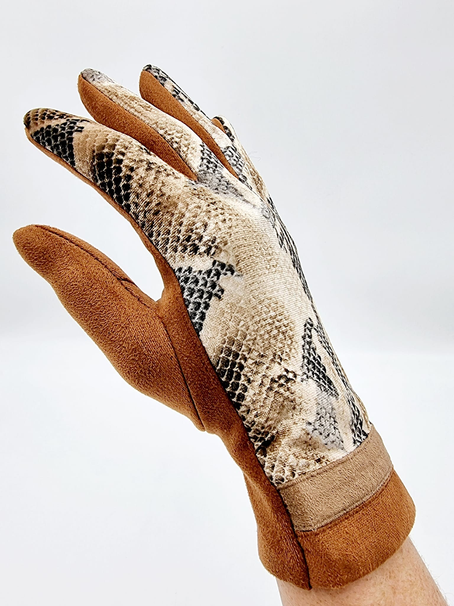 Handske shiny snake. Polyester/Bomuld. One Size. Camel.