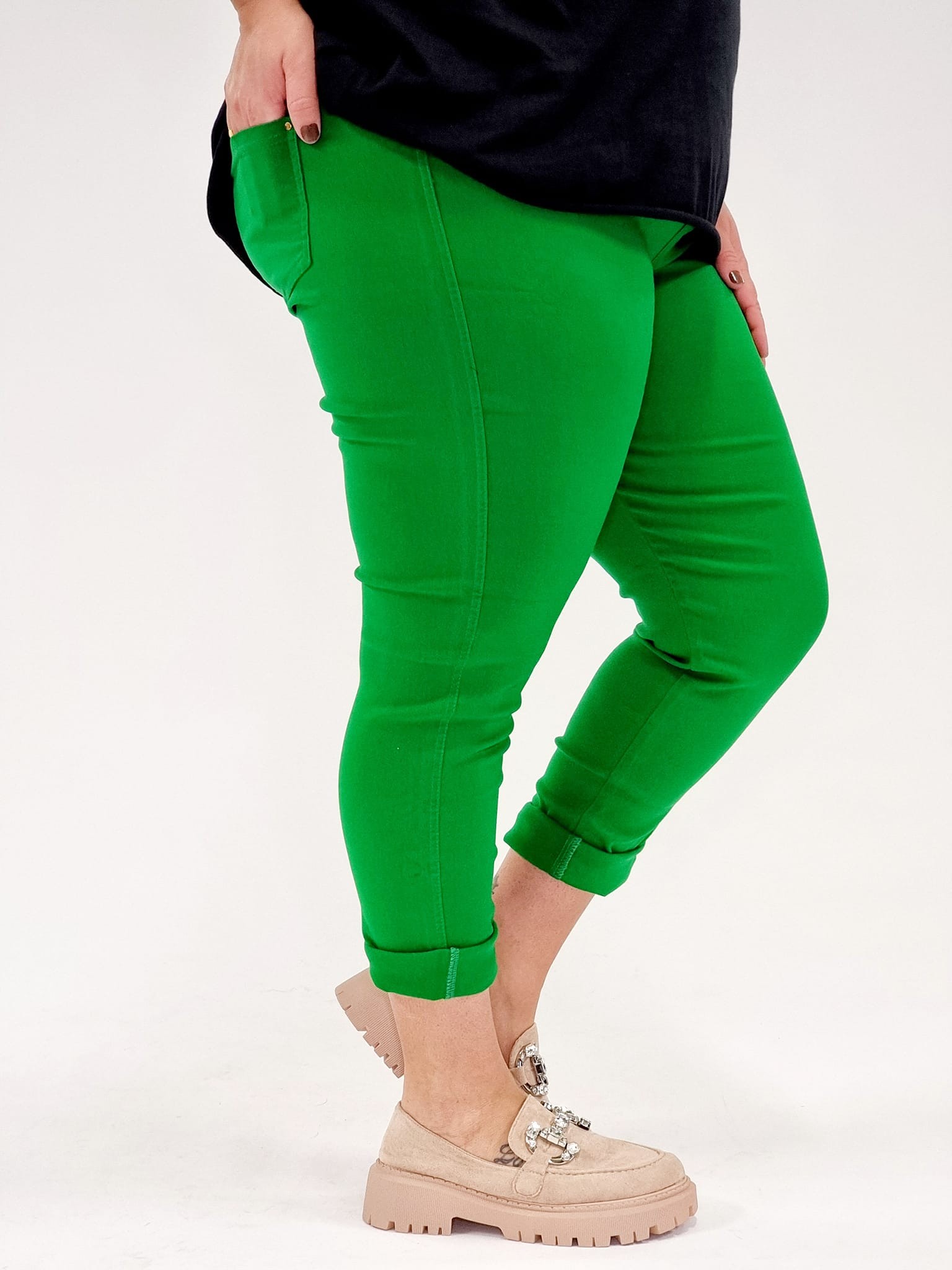 Stylenr 132460 Leggins PLUS SIZE WOMAN plain med baglommer. Bomuld/Nylon/Spandex. Panggrøn