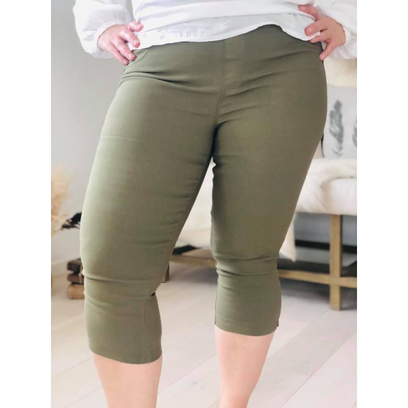 Stylenr 132523 Capri Leggins PLUS SIZE WOMAN plain med baglommer. Bomuld/Nylon/Spandex. Grøn