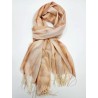 312404 Tørklæde ( S-70013 ) batikstriber & guldstøv/frynser. Viscose. Beige