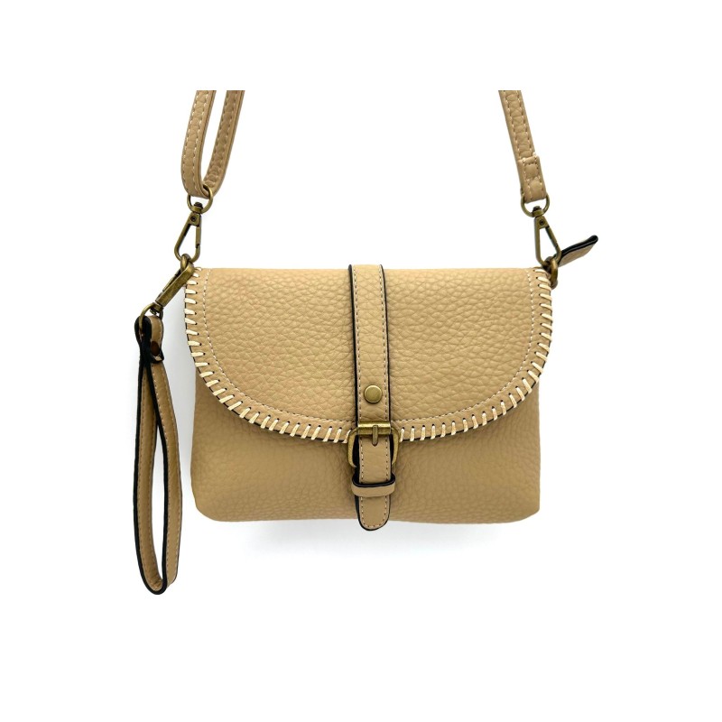 412417 Skuldertaske ( 19254 ) med syninger. 21x17 cm. Syntet. Taupe