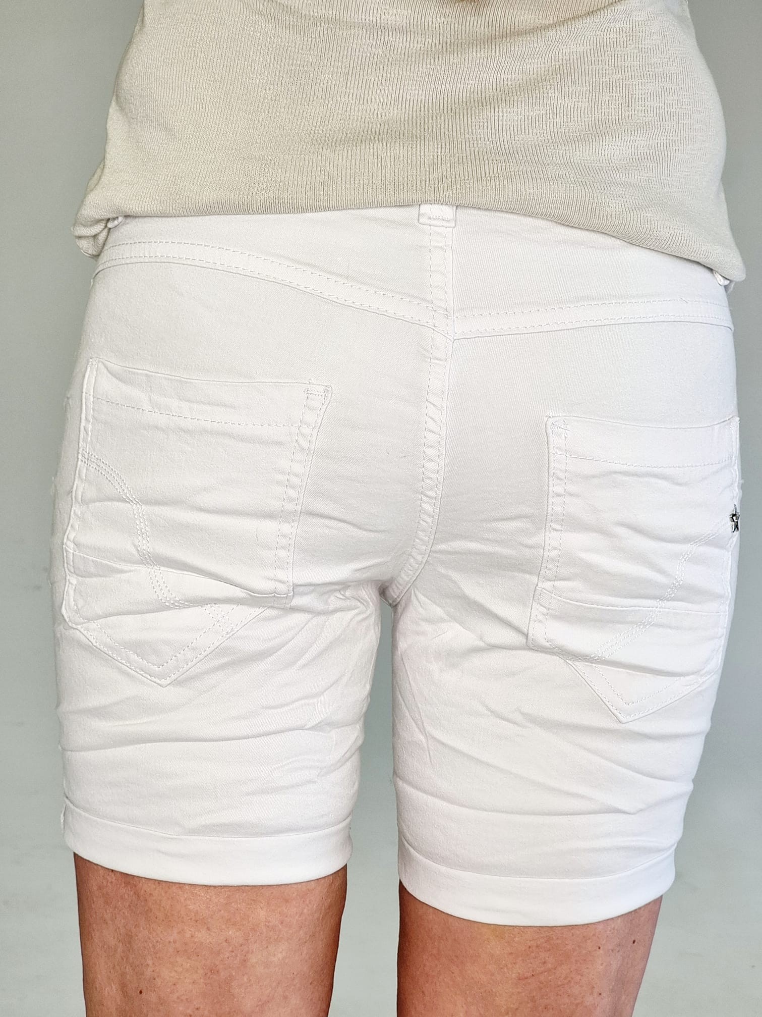 Shorts plain med 5 knapper. Hvid Str. 34-42