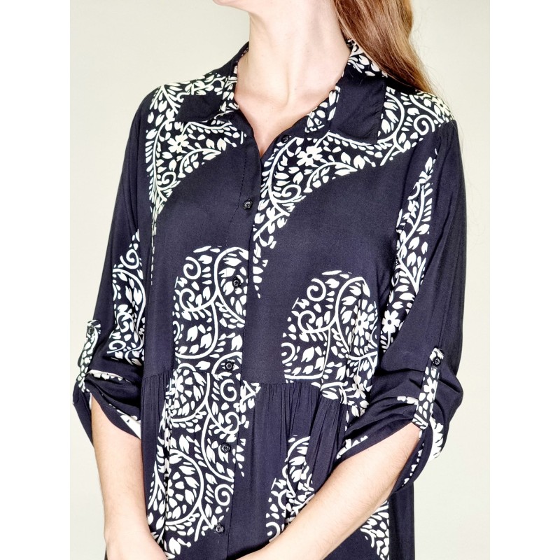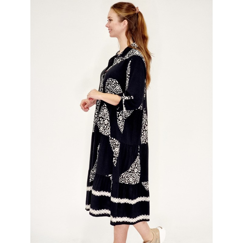 133251 Kjole gennemknappet mønstret. Viscose. Sort