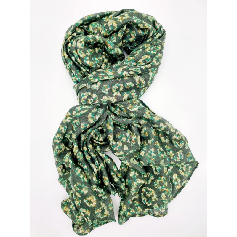 Tørklæde ( 22482 ) med guldprint & mønster. Viscose/Bomuld. Grøn