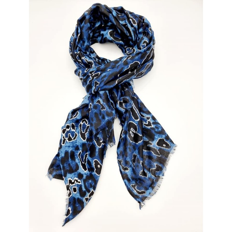 Tørklæde leopard. Viscose/Bomuld. Blå/Sølv.