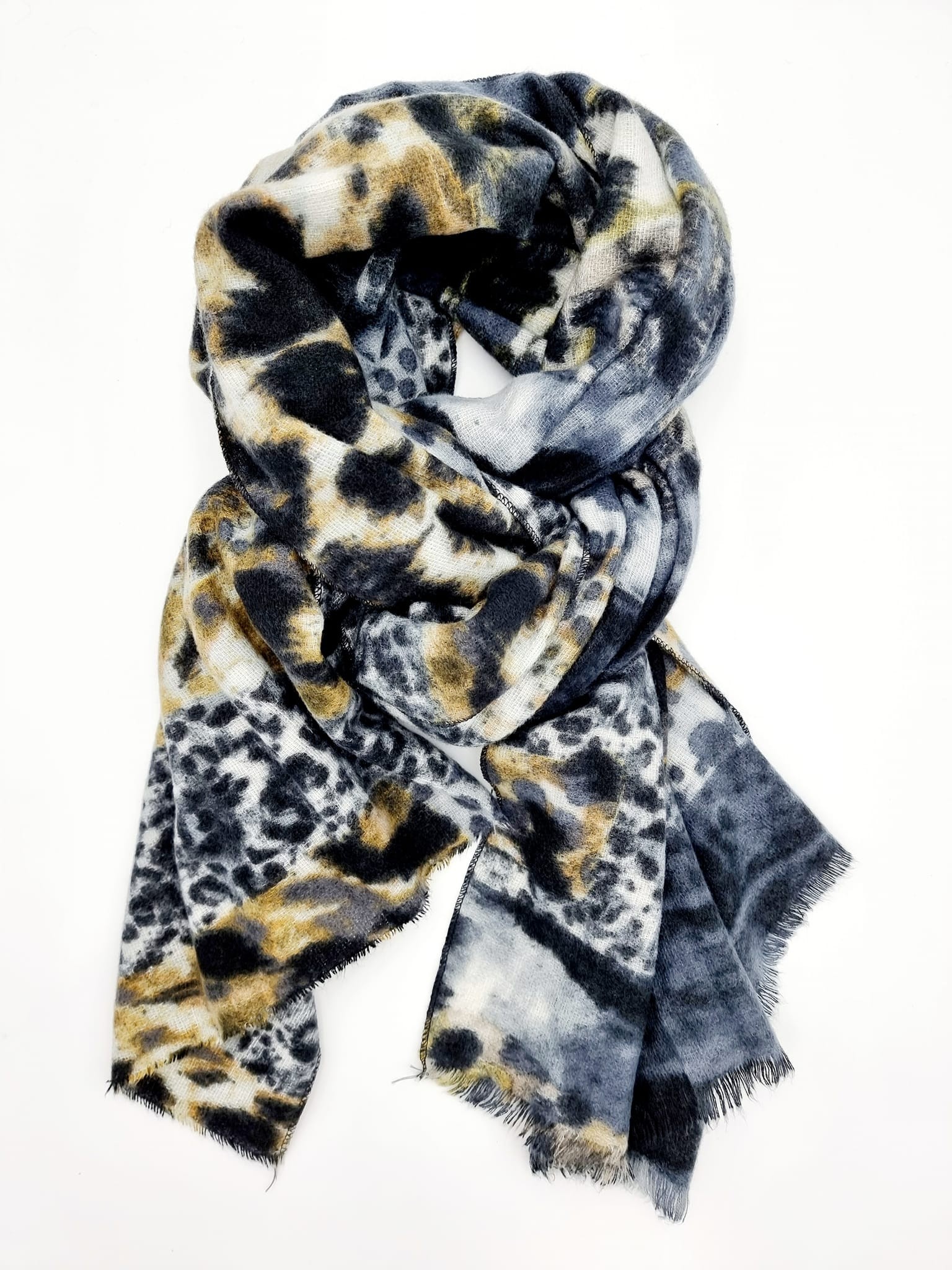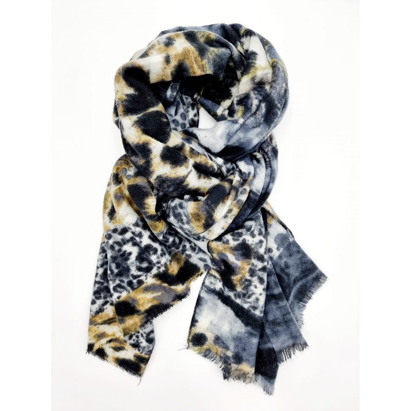 Stylenr 312021 Tørklæde med mixet dyreprint. Viscose/Uld. Grå