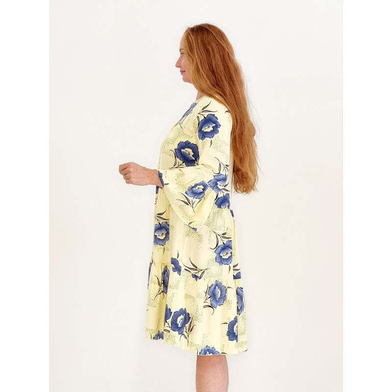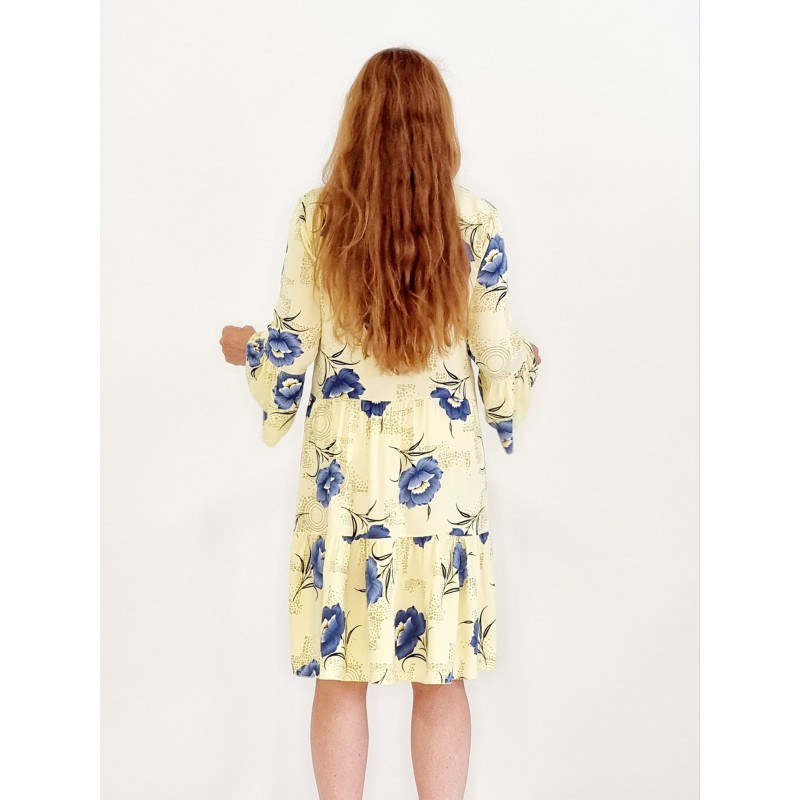 Stylenr 132555 Kjole/Tunika med 4 knapper og blomster. Viscose. Gul