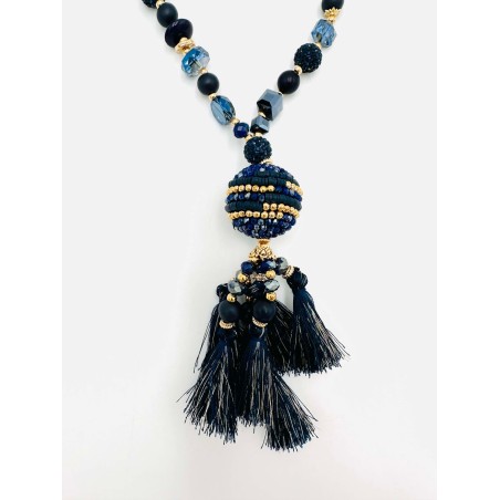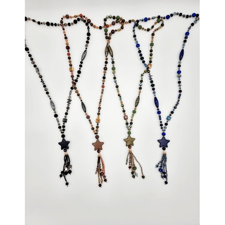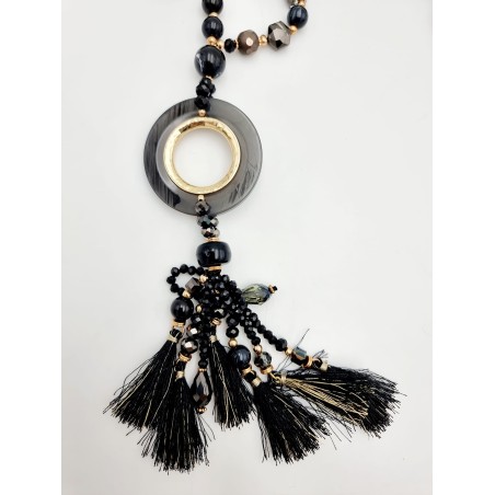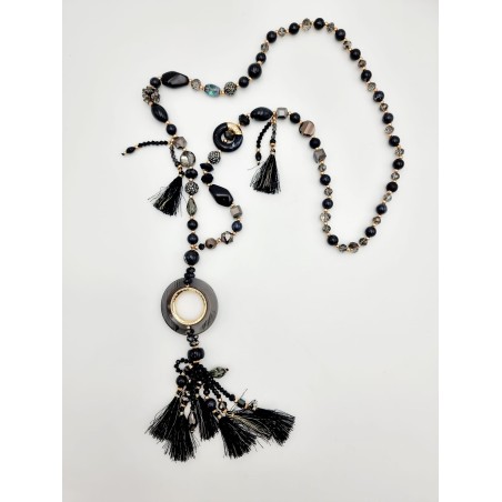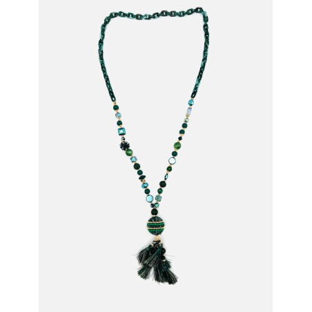 SALE 552345 Necklace long with small round simili beads/round ring/tassel. Armygreen DKK249.00 DKK49.80