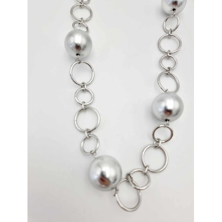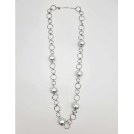 SALE 552332 Necklace long with oval round rings/glass place/simili. Gold/Clear stone DKK169.00 DKK33.80