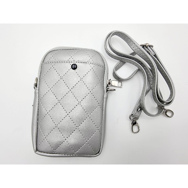 442200 Mobile holder with long strap/small pocket in front. 19x12 cm. Silver