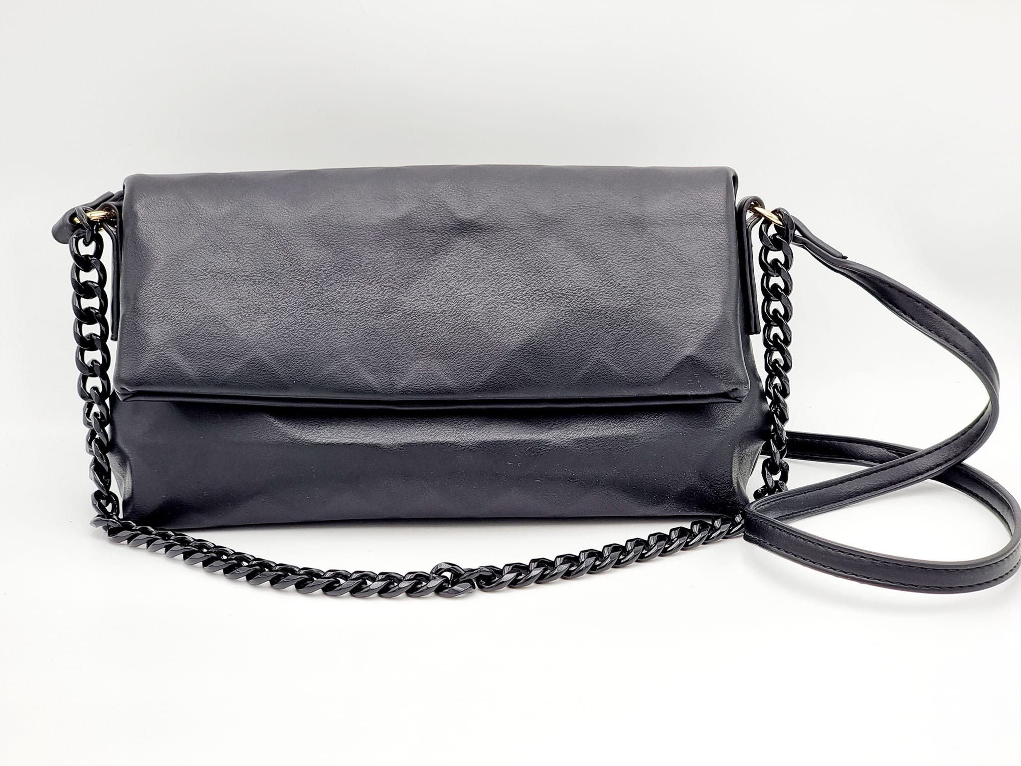 412328 Clutch oblong with both chain strap & general strap. 28x16cm. Black.