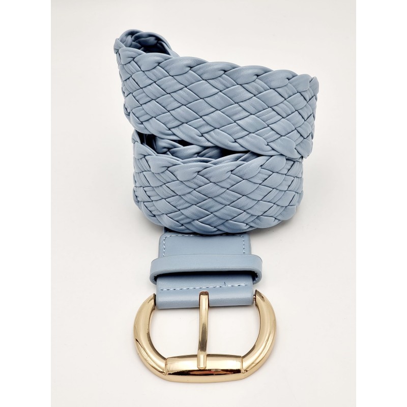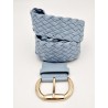 432100 Belt braid with gold buckle. Synthetized. 5 cm wide. One Size. Blue