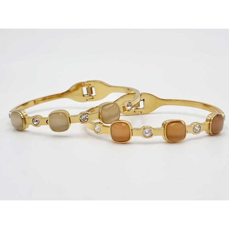NEW 522504 Bracelet hoop with 3 stones & Rehinstone. Champagne