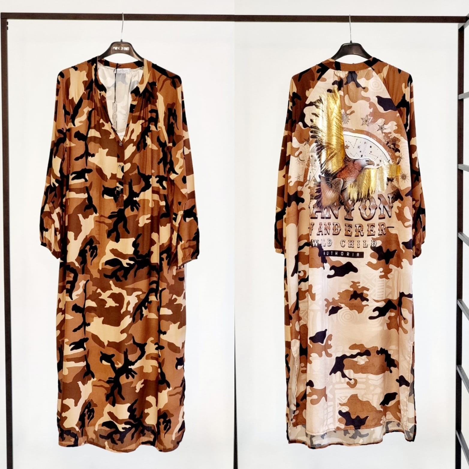 133189 Dress camouflage with slits in the sides & eagle on the back. Brown
