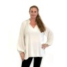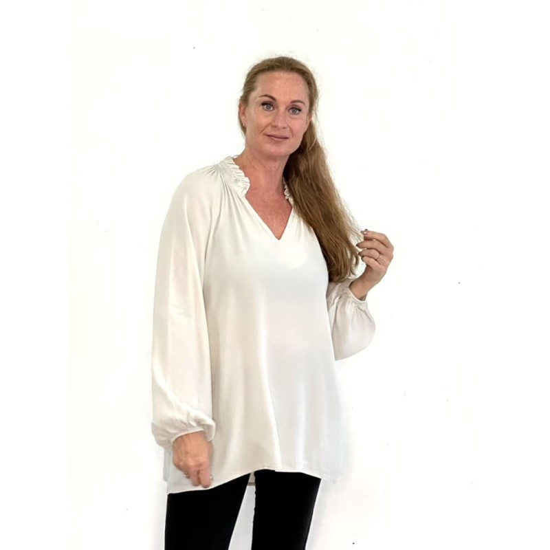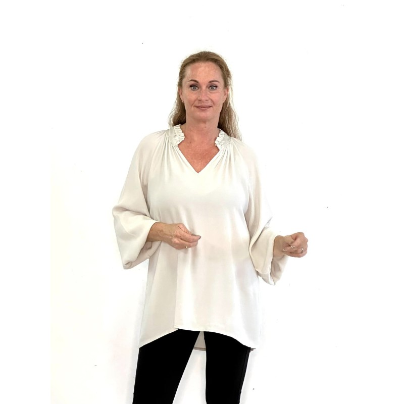 Styleno 133232 Shirt blouse with frill at the neck & elastic on the wrists. Light beige