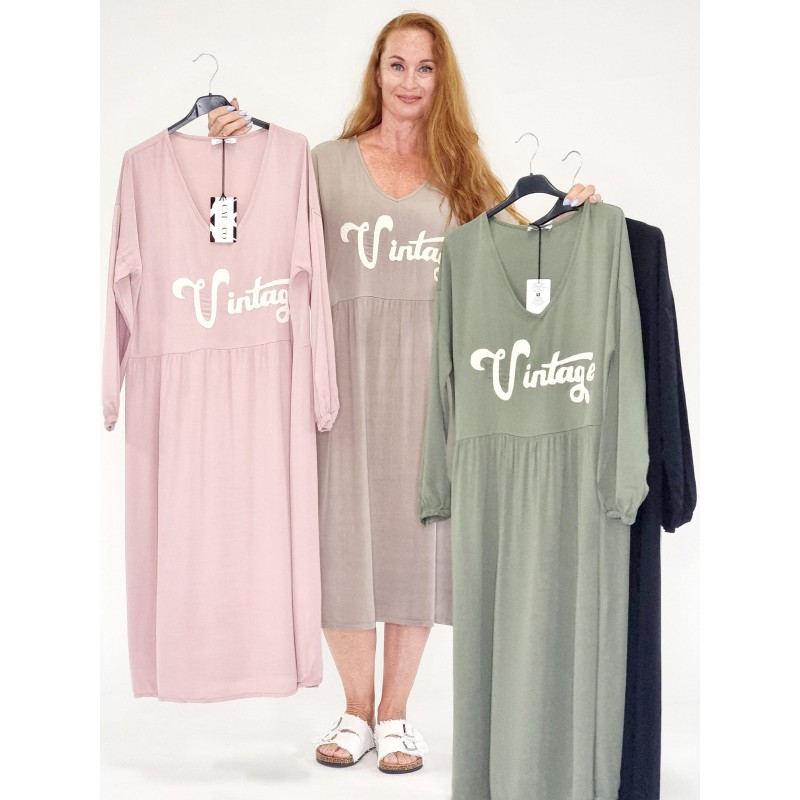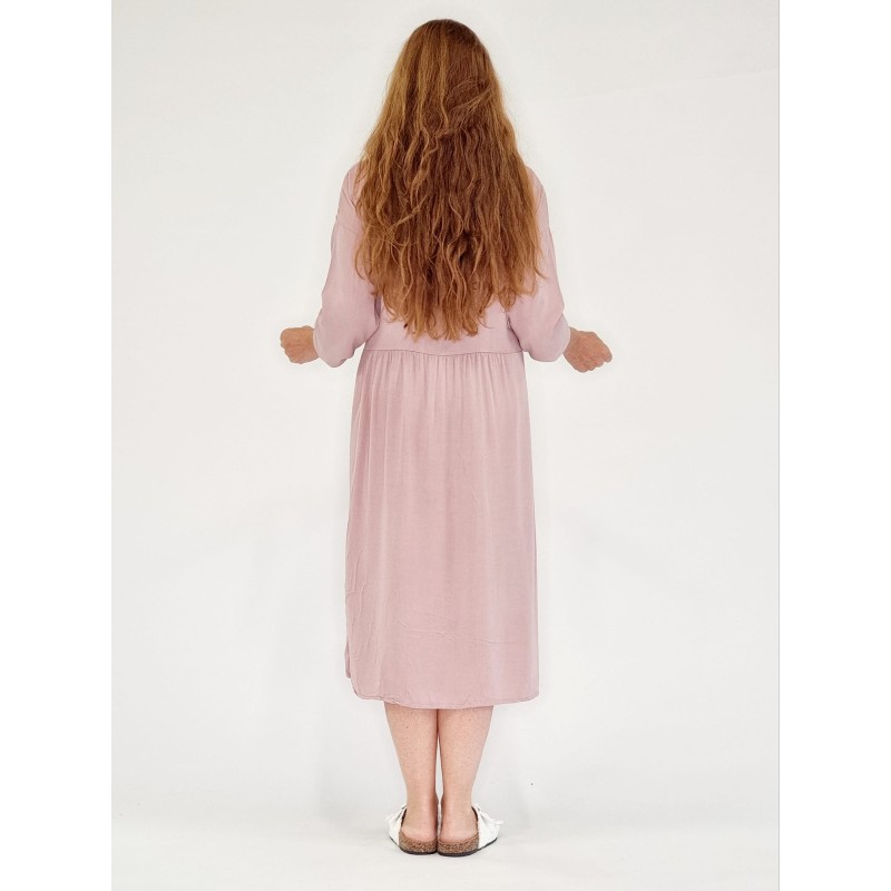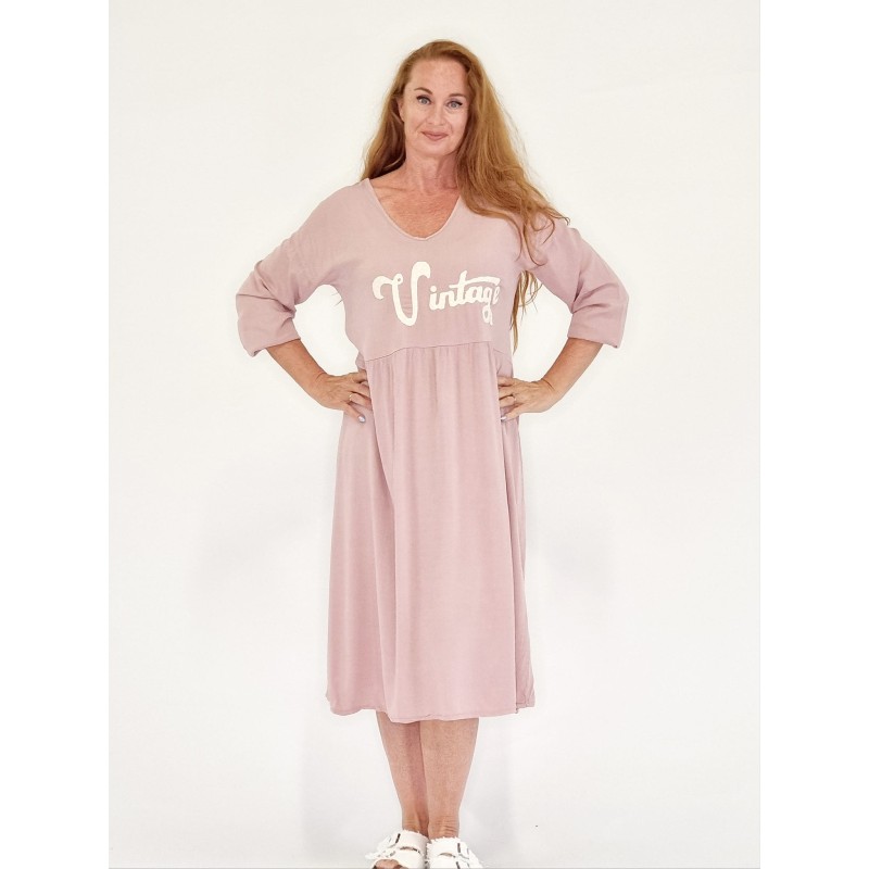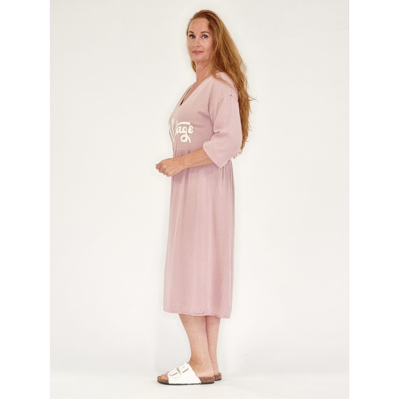 132829 Dress "Vintage" with long sleeves and elastic. Viscose. One Size. Rose