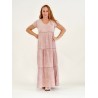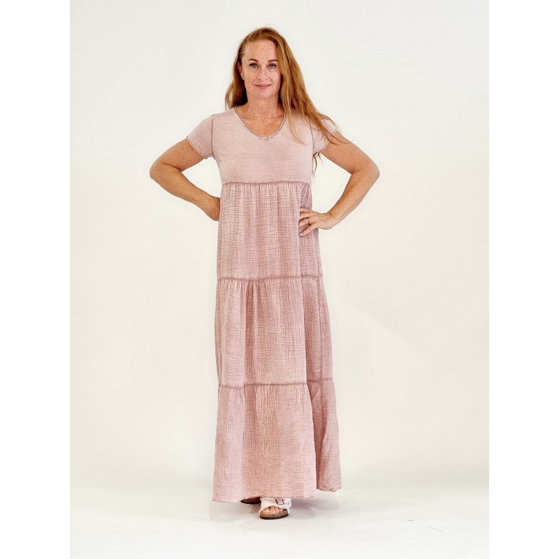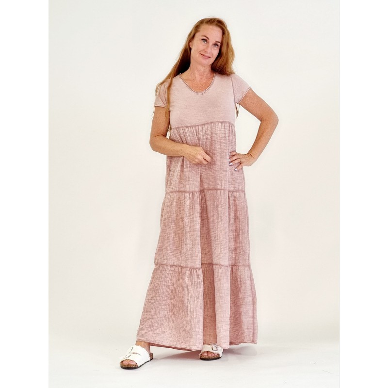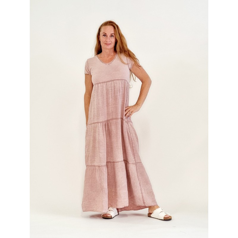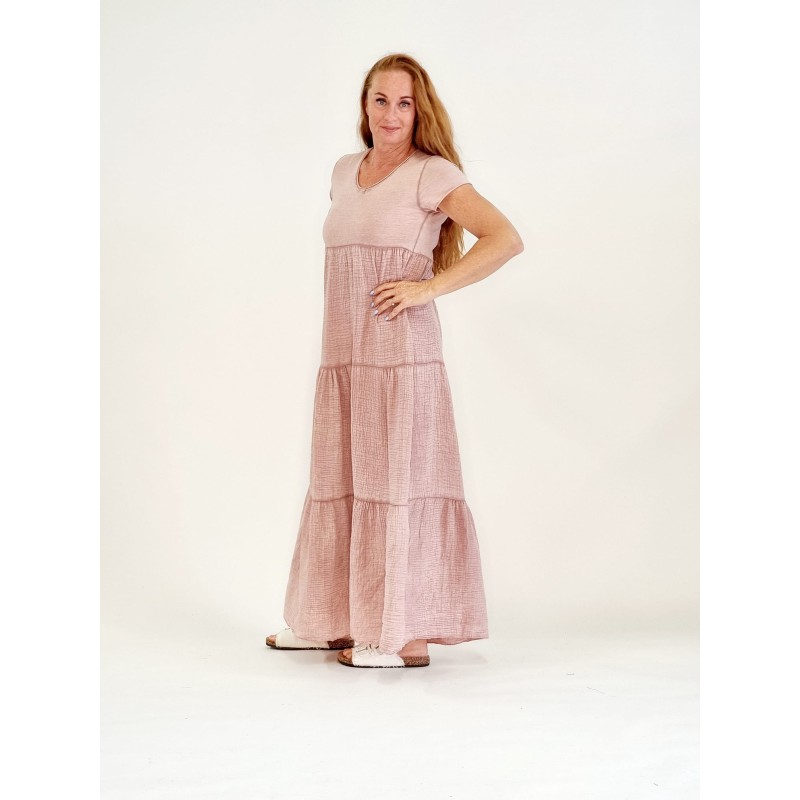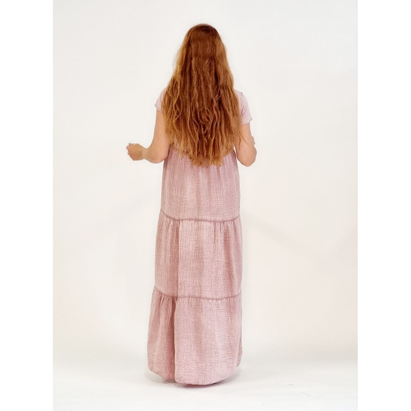 132800 T-Shirt Full-length dress with crepe layers. Cotton/Lino. One Size. Rosa