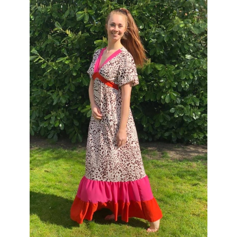 132757 Dress leopard long with puff sleeves. Viscose/Elastane One Size.
