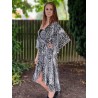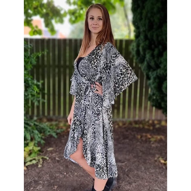 Style no. 132852 Dress multi print with bat sleeves/tie and ruffles. Viscose. One Size. Army Green