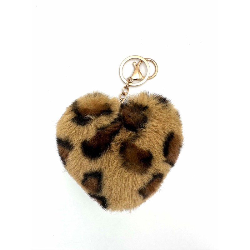 511901 Keychain/Bag charm heart fake fur. Brown
