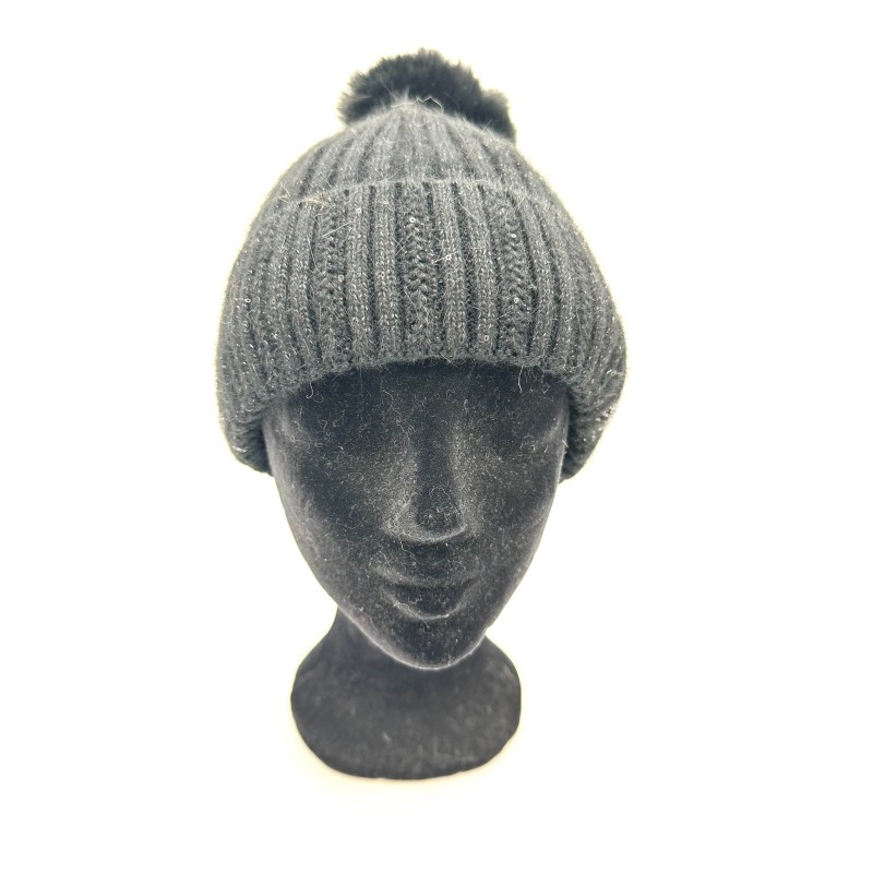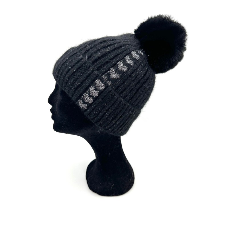 NEW Style no. 322408 Beanie ( H-29205 ) knit lined with sequins & hearts/dull. Acrylic/Wool. Black