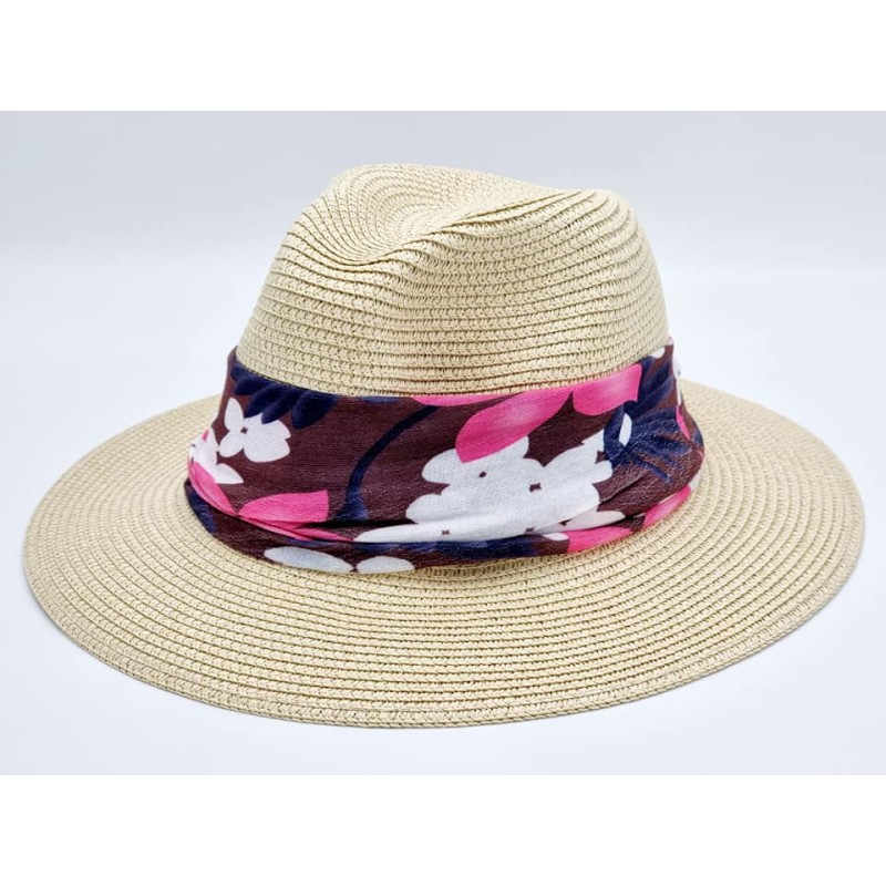 322203 Straw hat with removable scarf. Pink