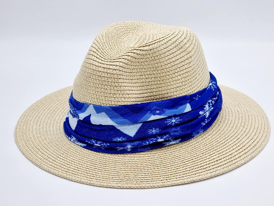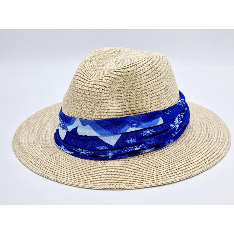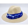 322203 Straw hat with removable scarf. Blue