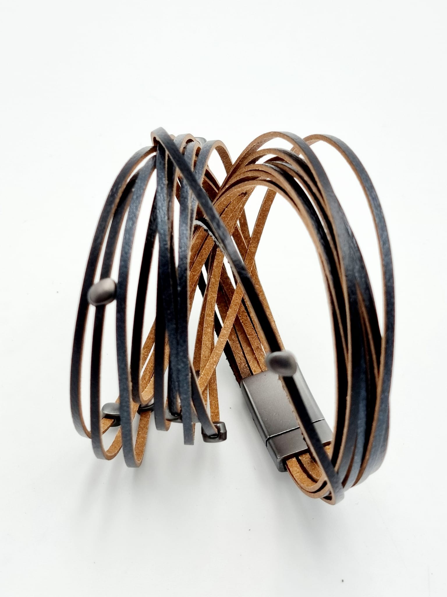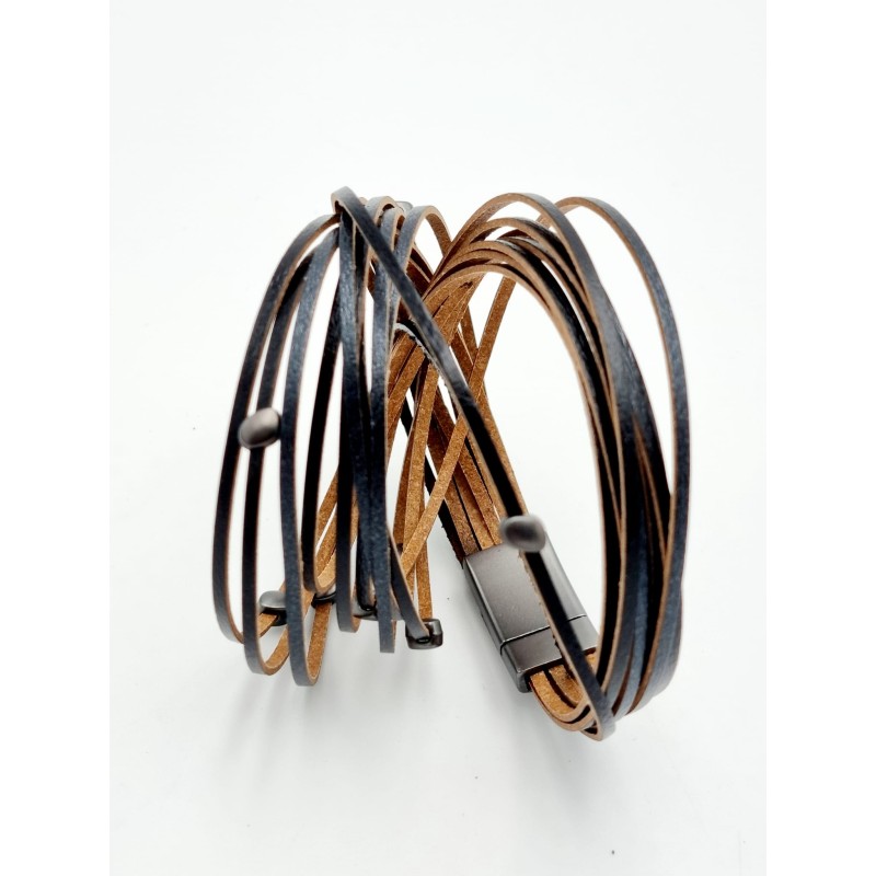 521812 Bracelet 2 times round with stones and ten rows, and magnetic clasp. Black