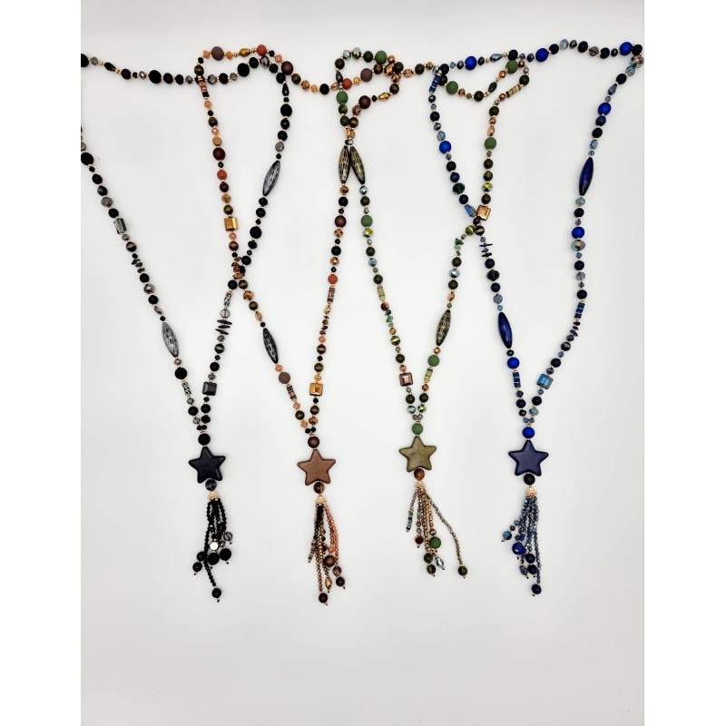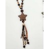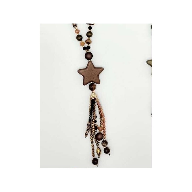 552327 Long necklace with pearls/star & tassel. Brown