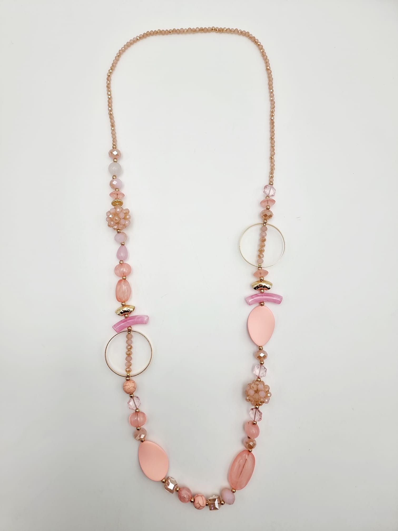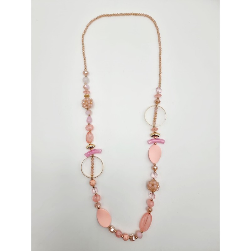 552405 Necklace long with 2 gold rings and pearls. Rosa