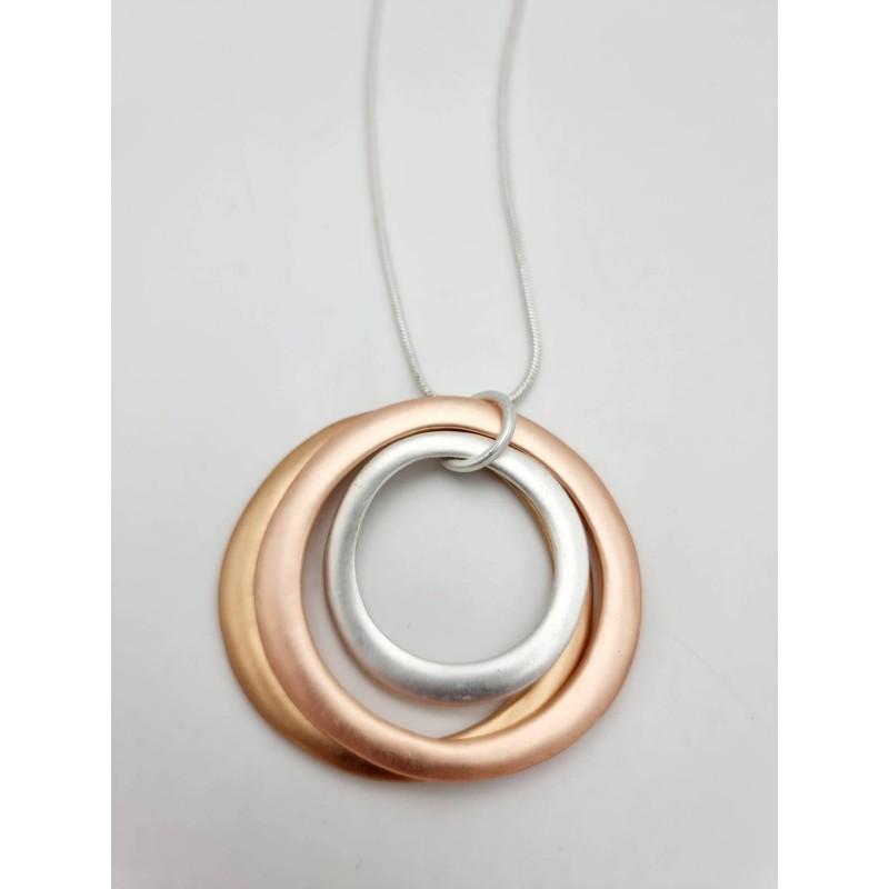 552205 Necklace long silver with 3 round matte rings in Silver/Gold/Rose Gold