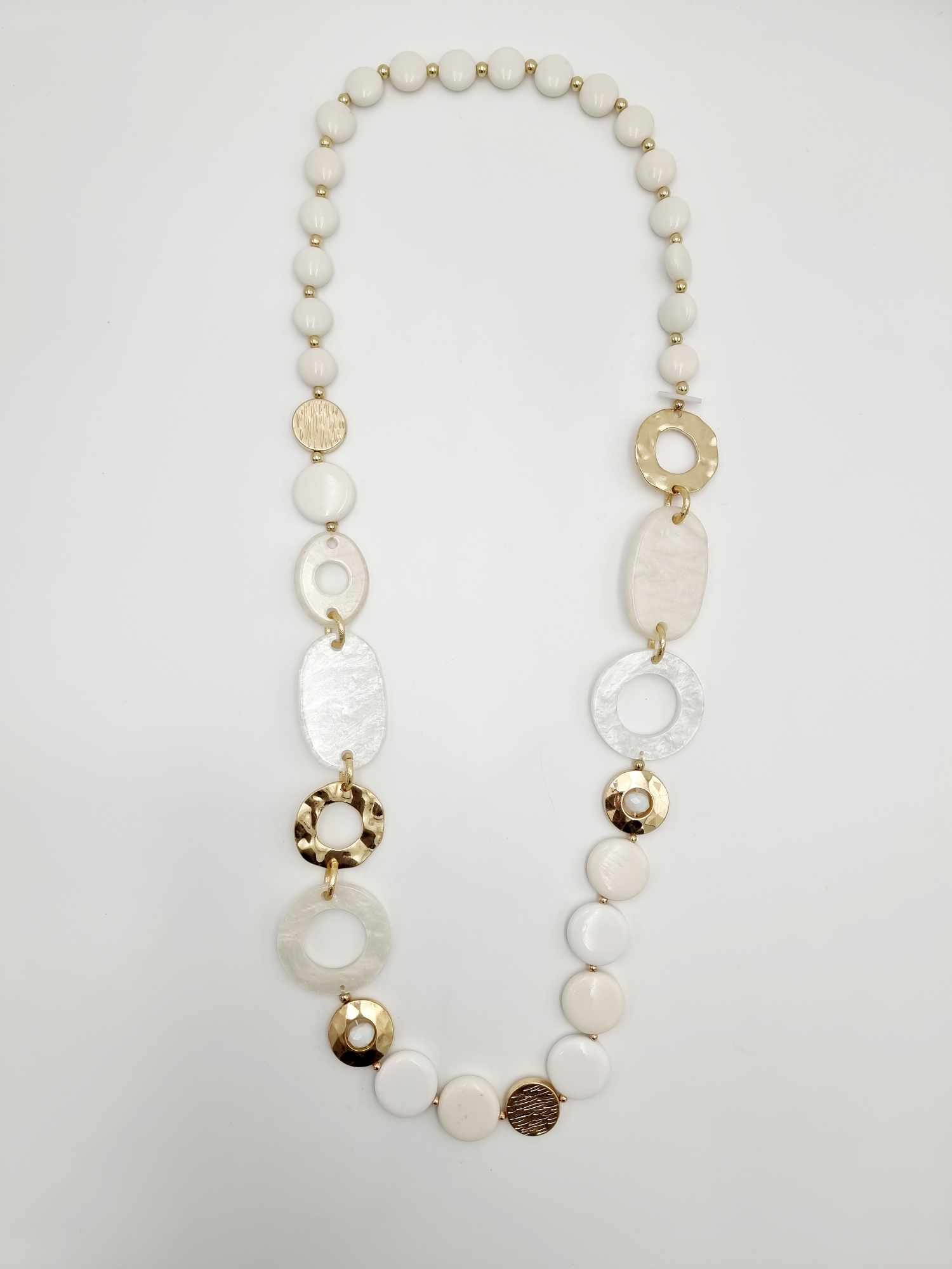 552415 Necklace long with stones/pearls/gold. White