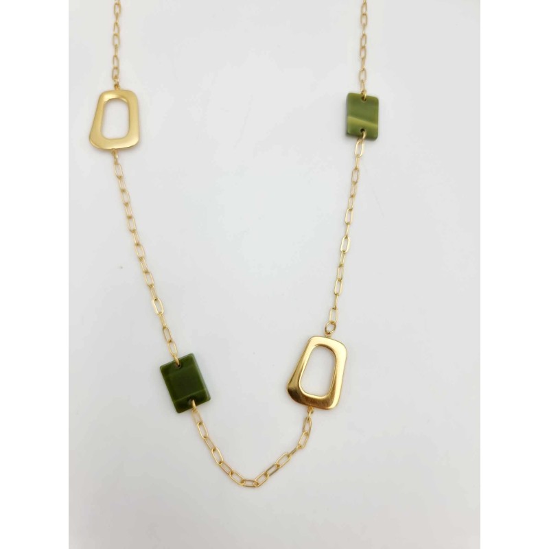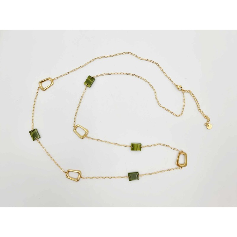 552417 Long necklace with squares & gold chain. Green