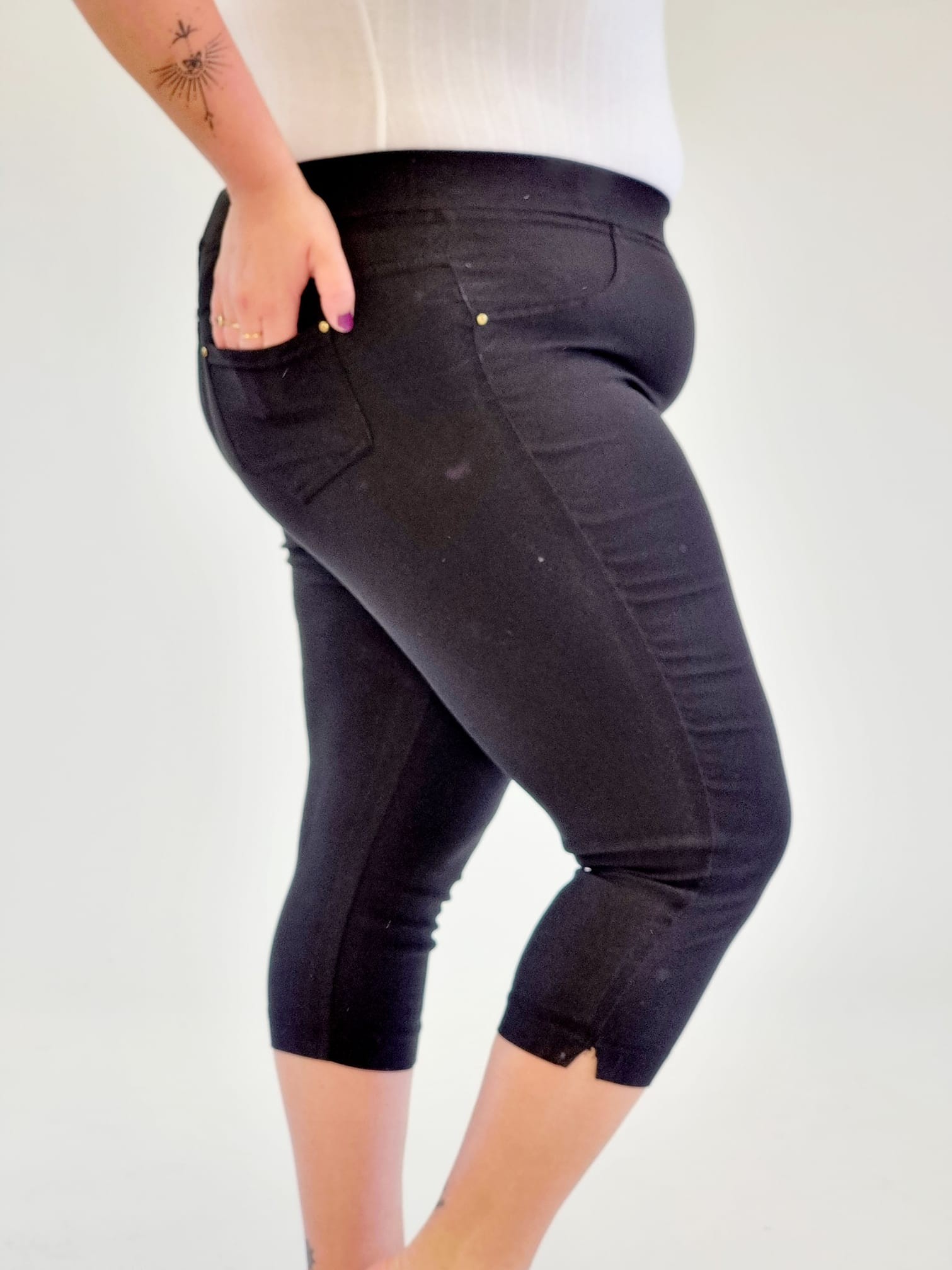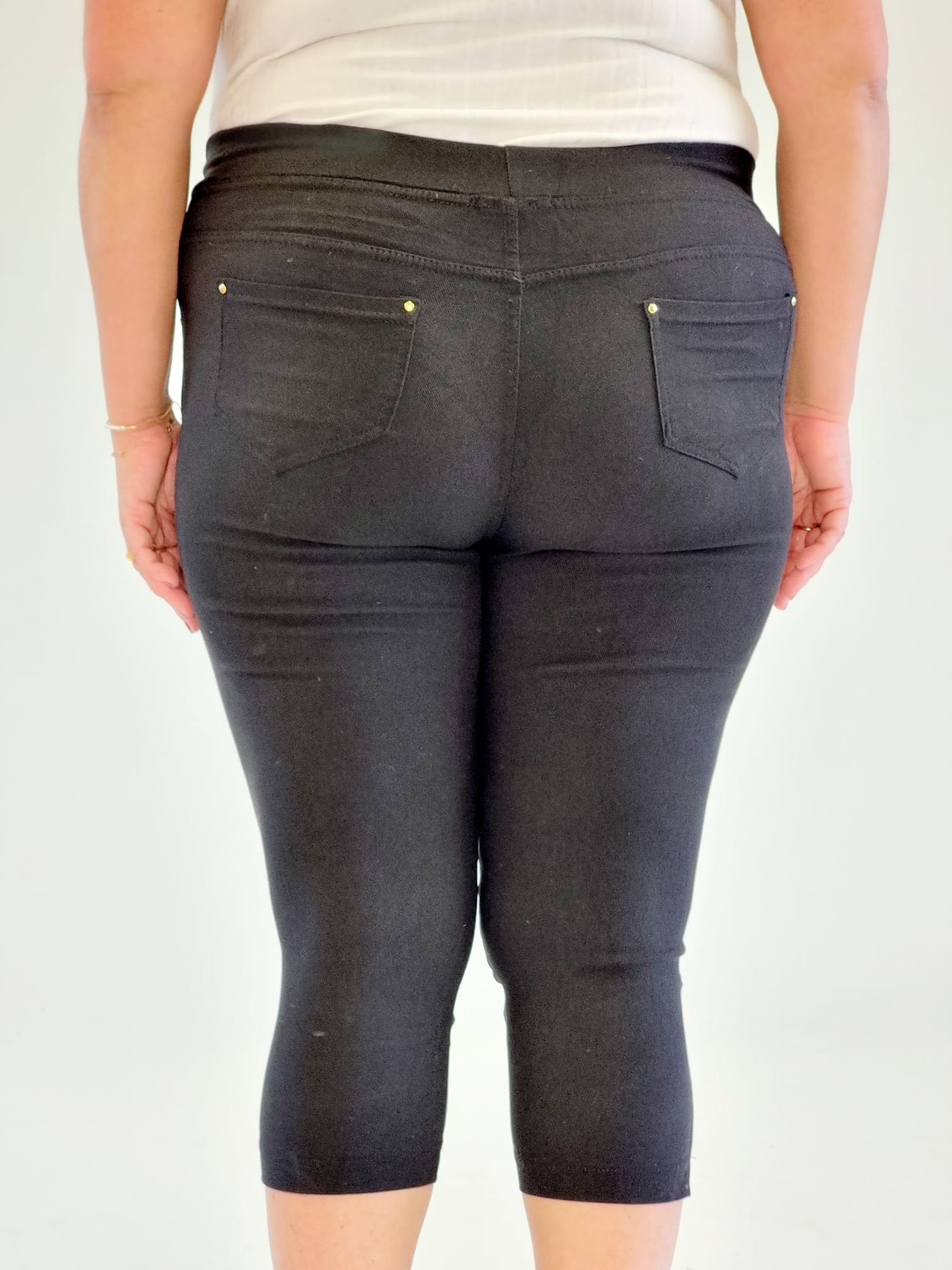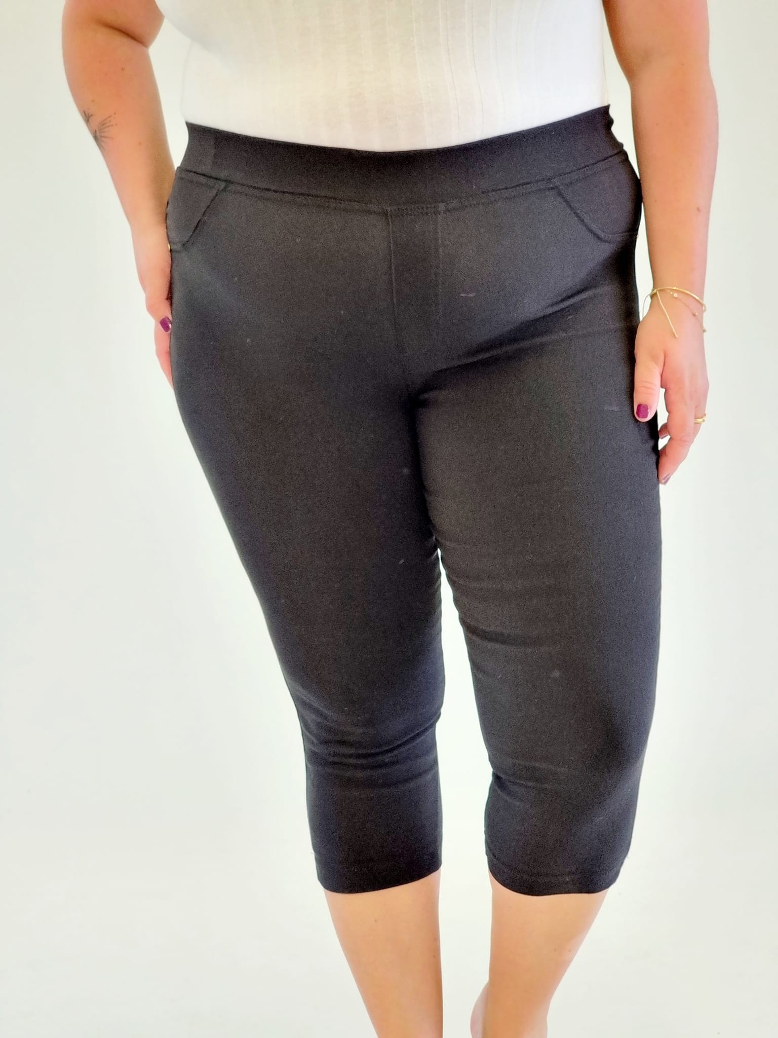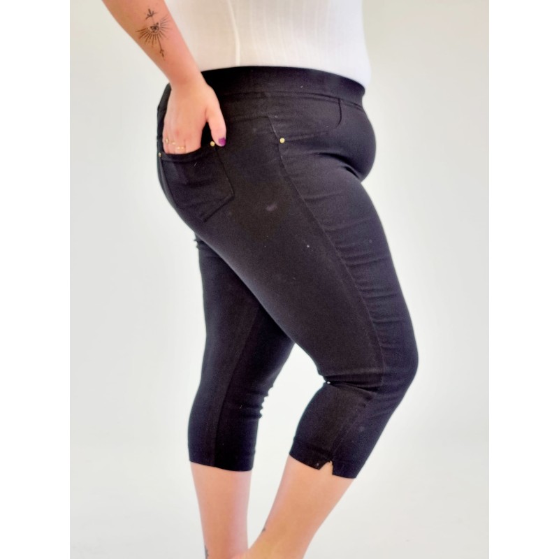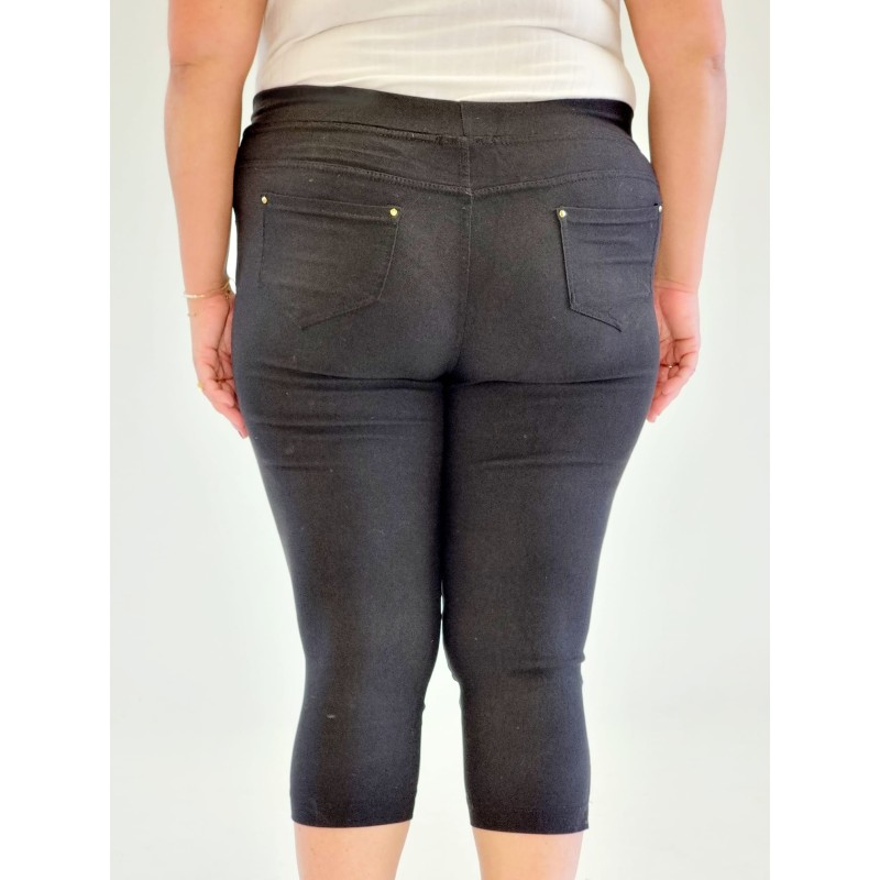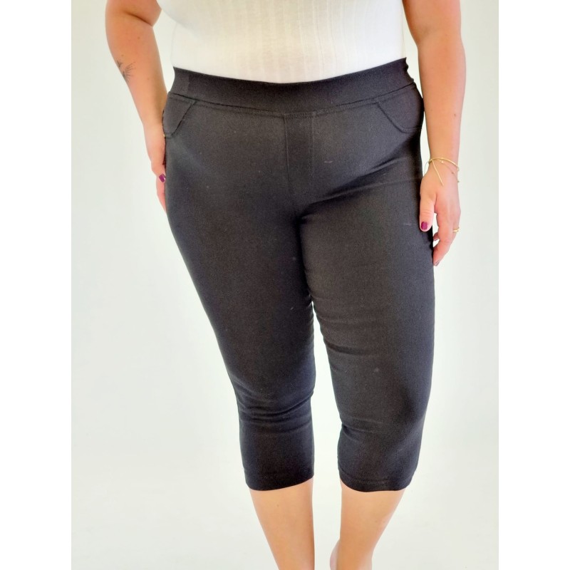 Style no. 132523 Capri Leggings PLUS SIZE WOMAN plain with back pockets. Cotton/Nylon/Spandex. Black