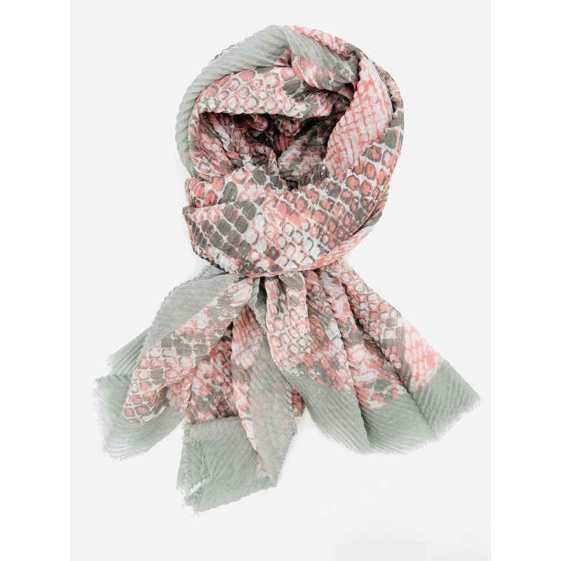 311906 Scarf pleated with a snake pattern. Light pink/Grey