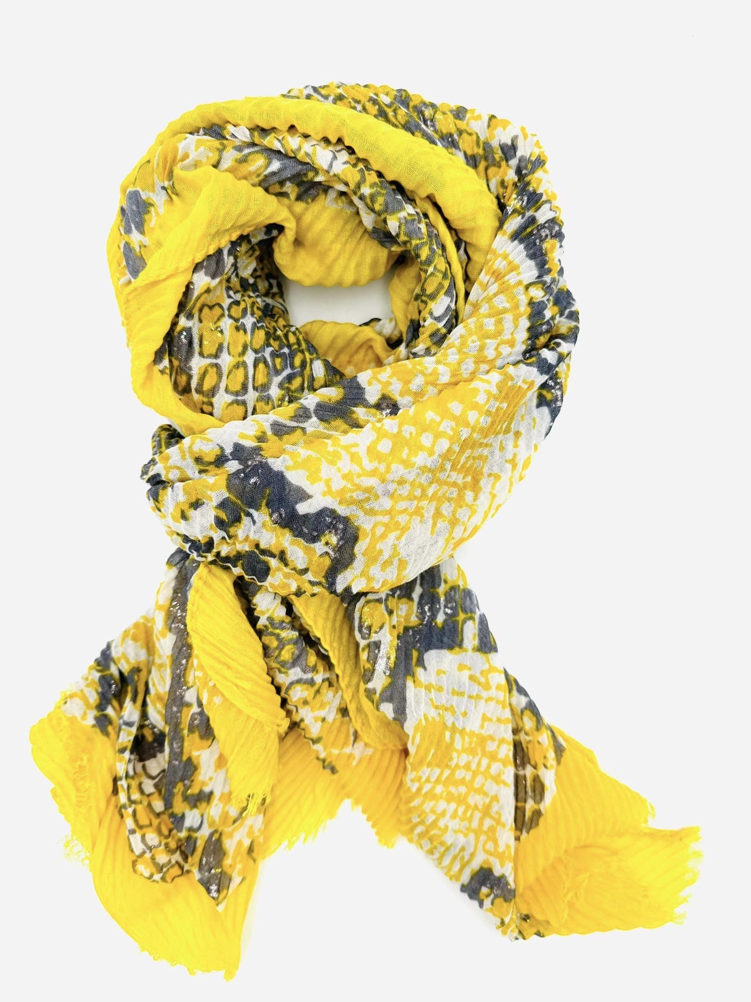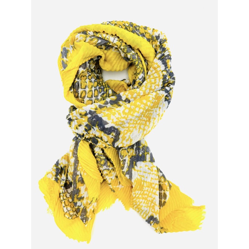 311906 Scarf pleated with a snake pattern. Yellow/Grey