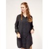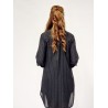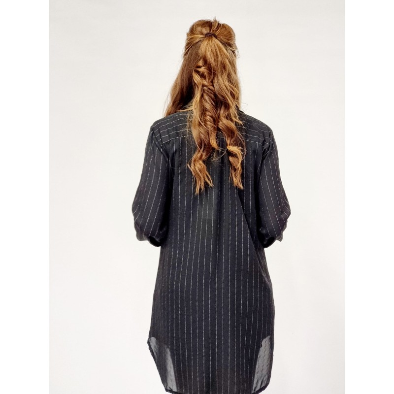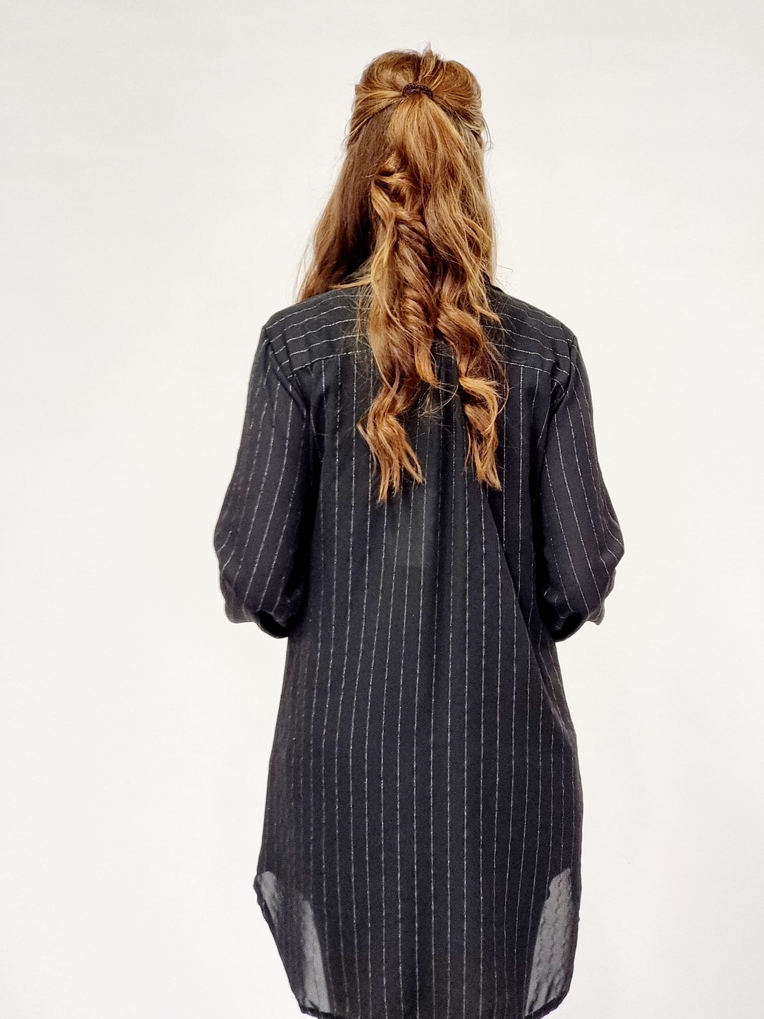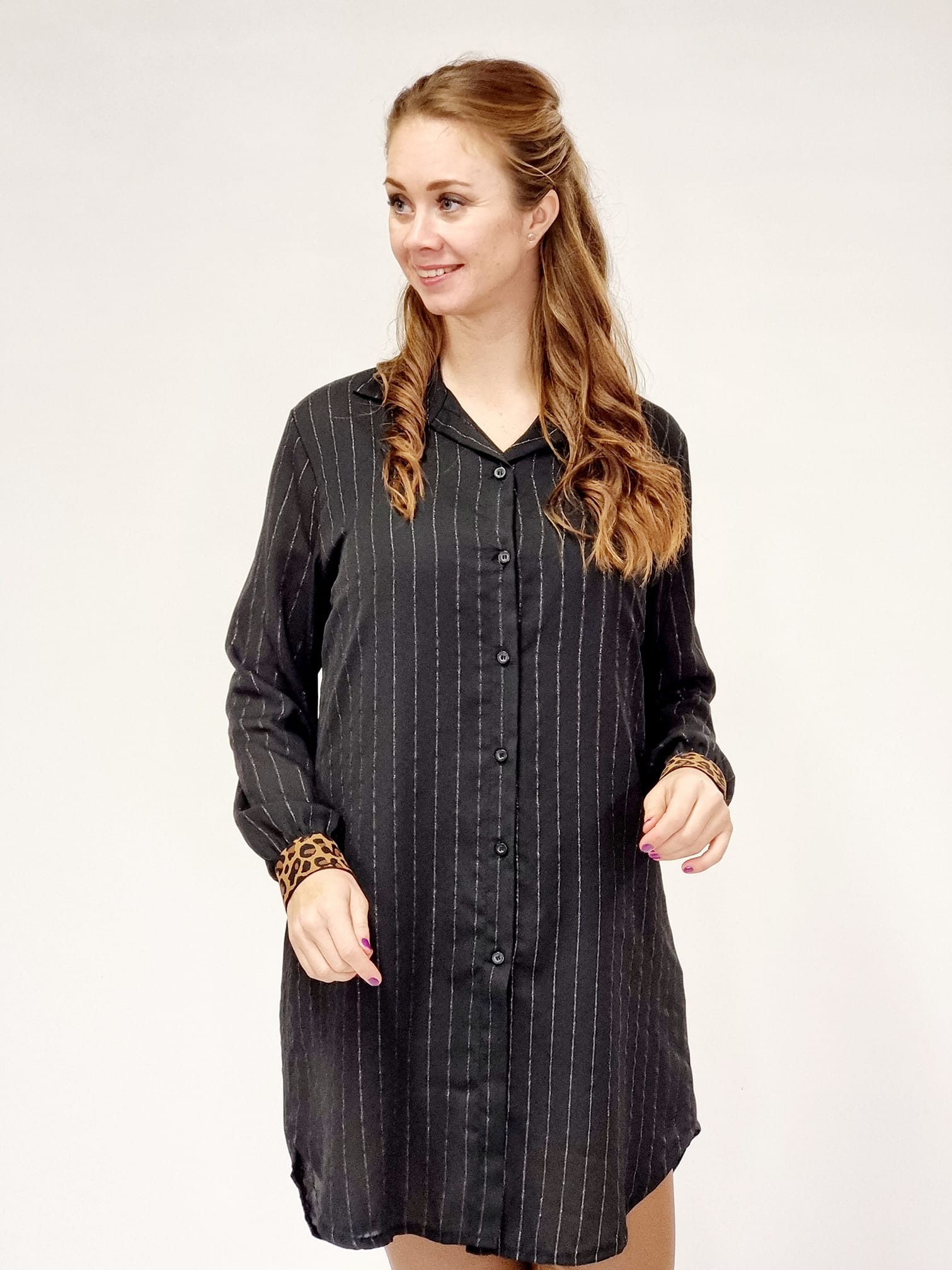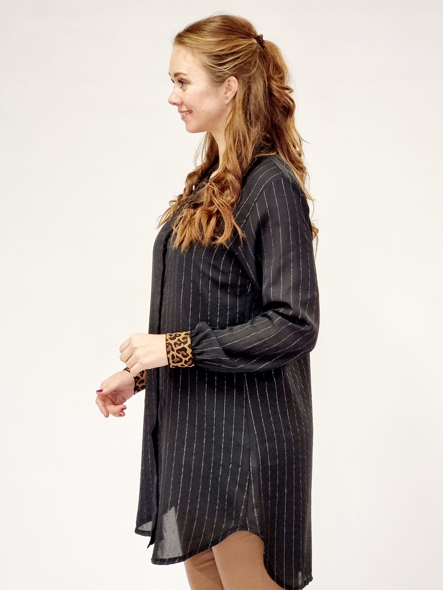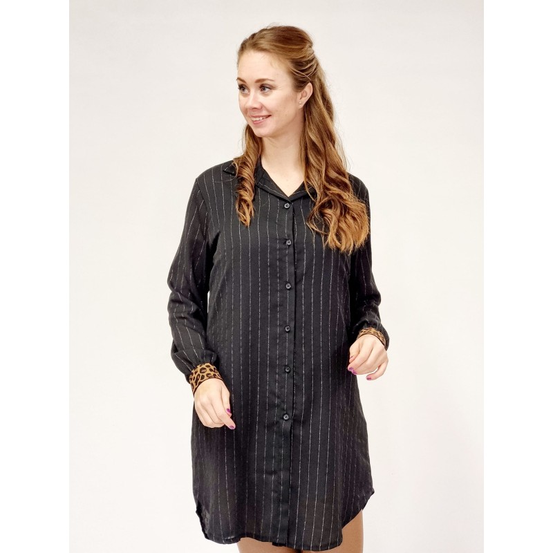 133083 Shirt long buttoned through with silver thread & leopard at sleeve. Black