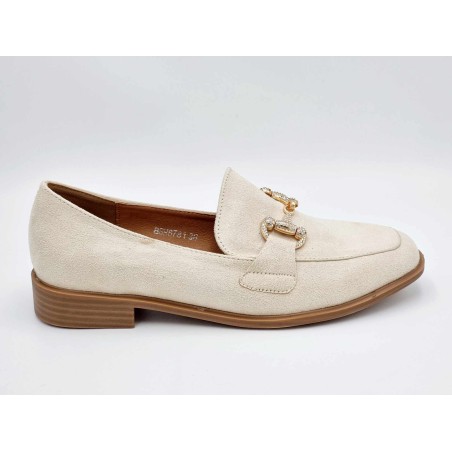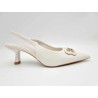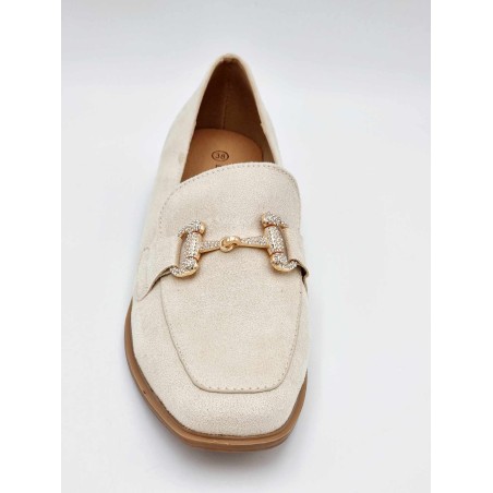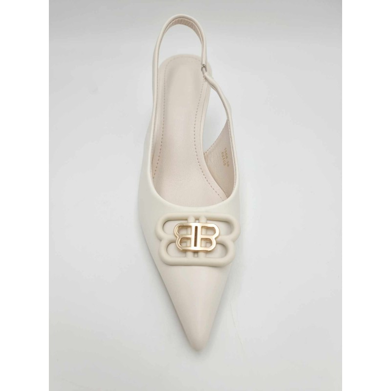 NEW 232502 Pointed toe shoes with small heel and gold buckle. Synthetic. Light Beige