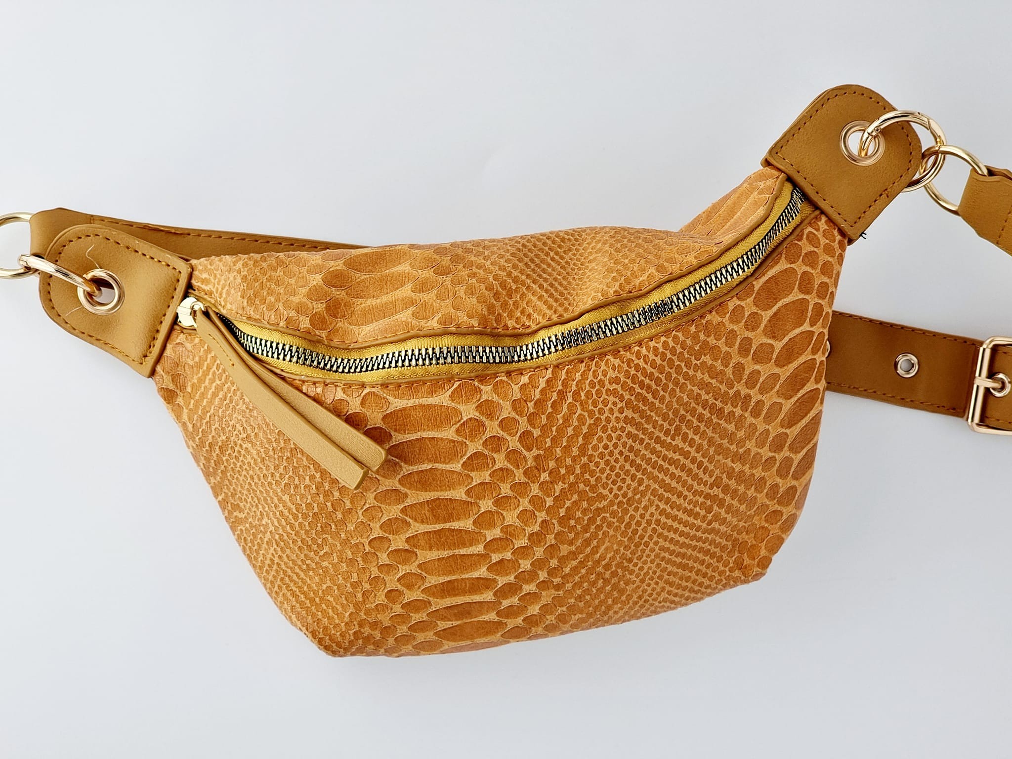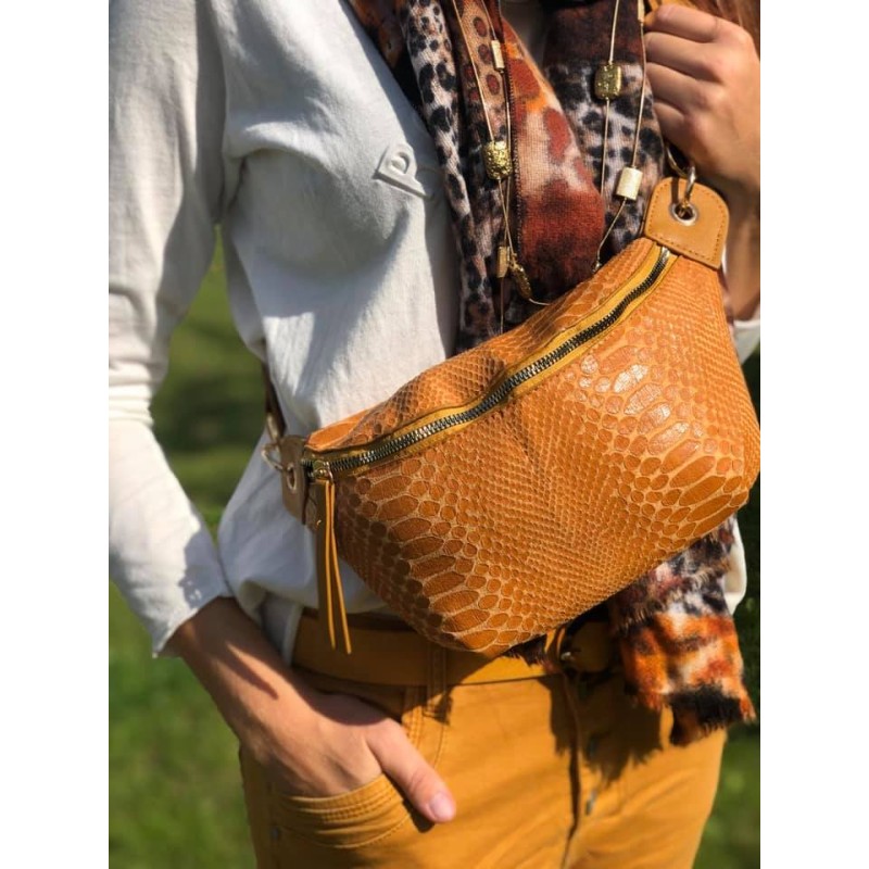 412021 Belt bag "Bumbag" snake. Synthetized. Curry