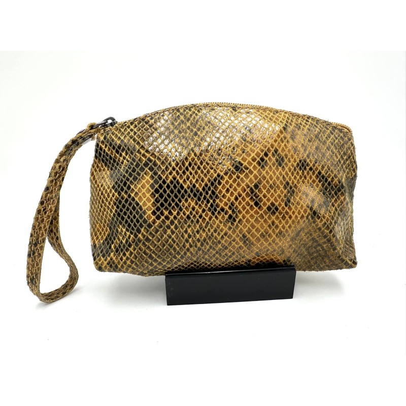 421901 Wallet/makeup leather shiny snake. 18x12 Cm Curry