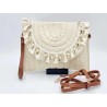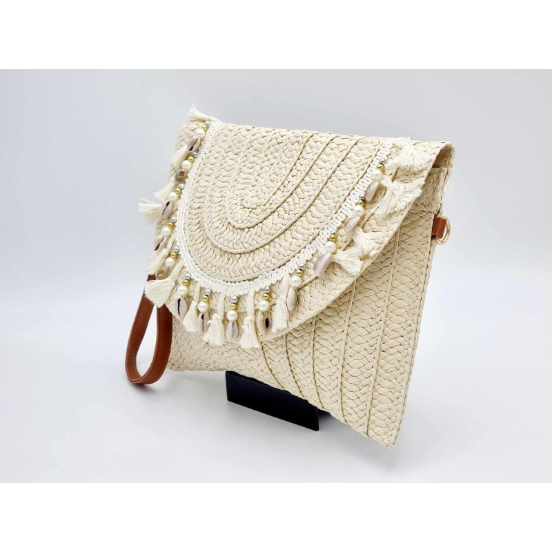 NEW 412500 Raffia bag (MML313B) with tassels/pearls/shells. Sand