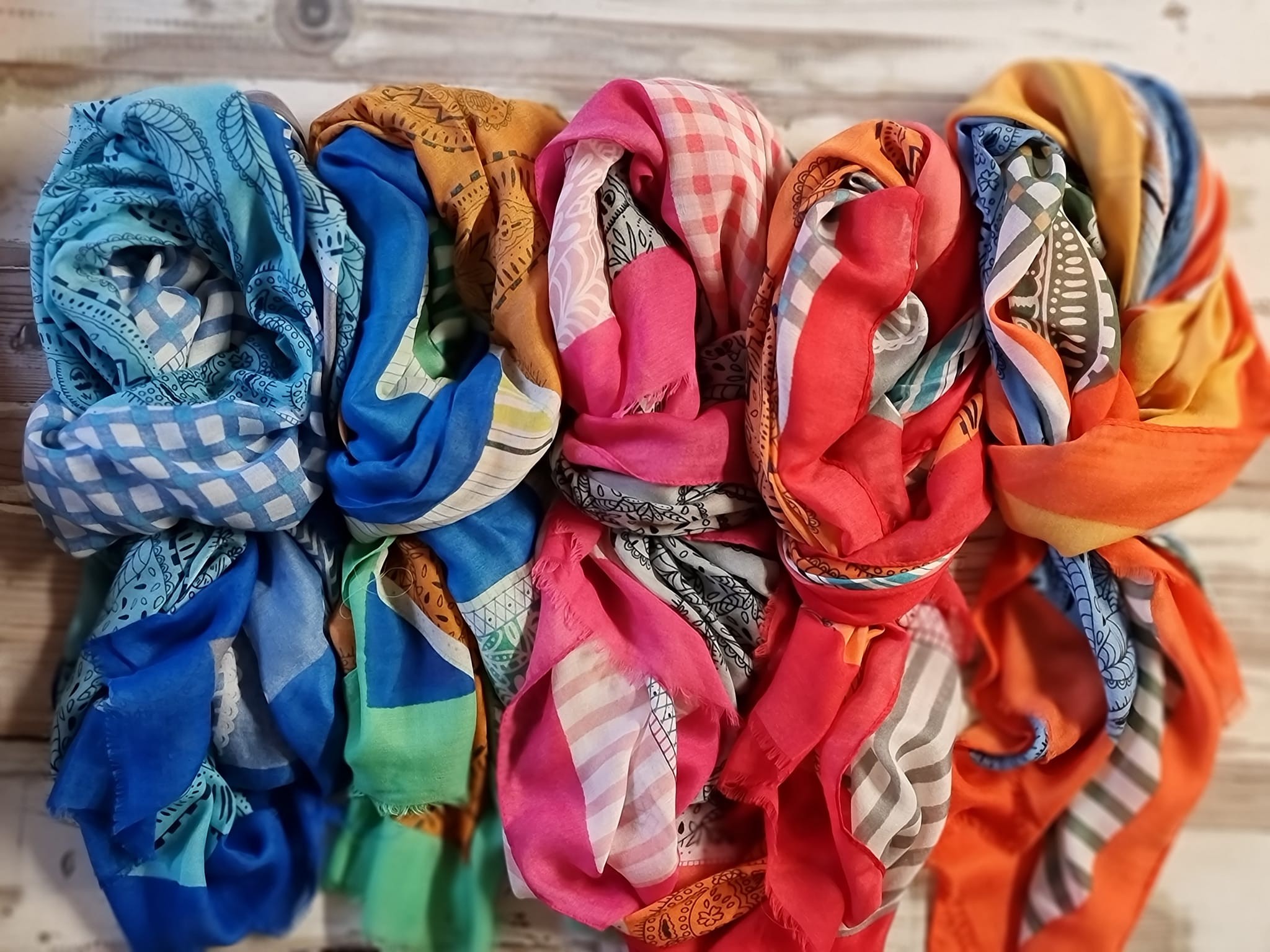 312200 Scarf with pattern/stripes. Viscose/Cotton. Blue