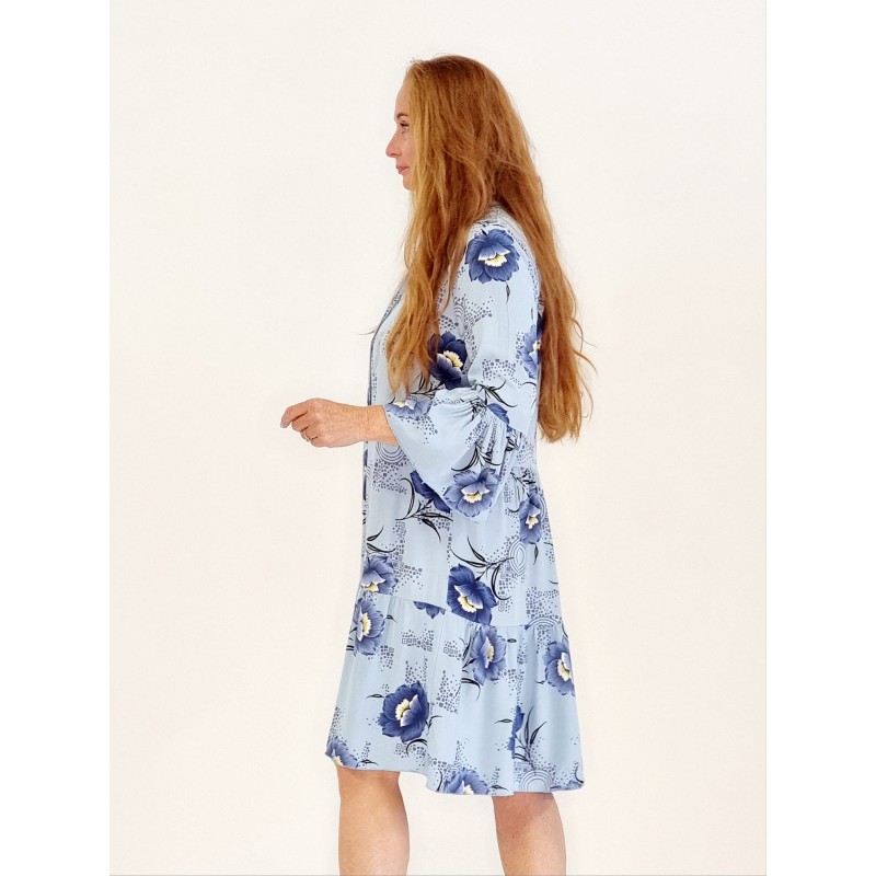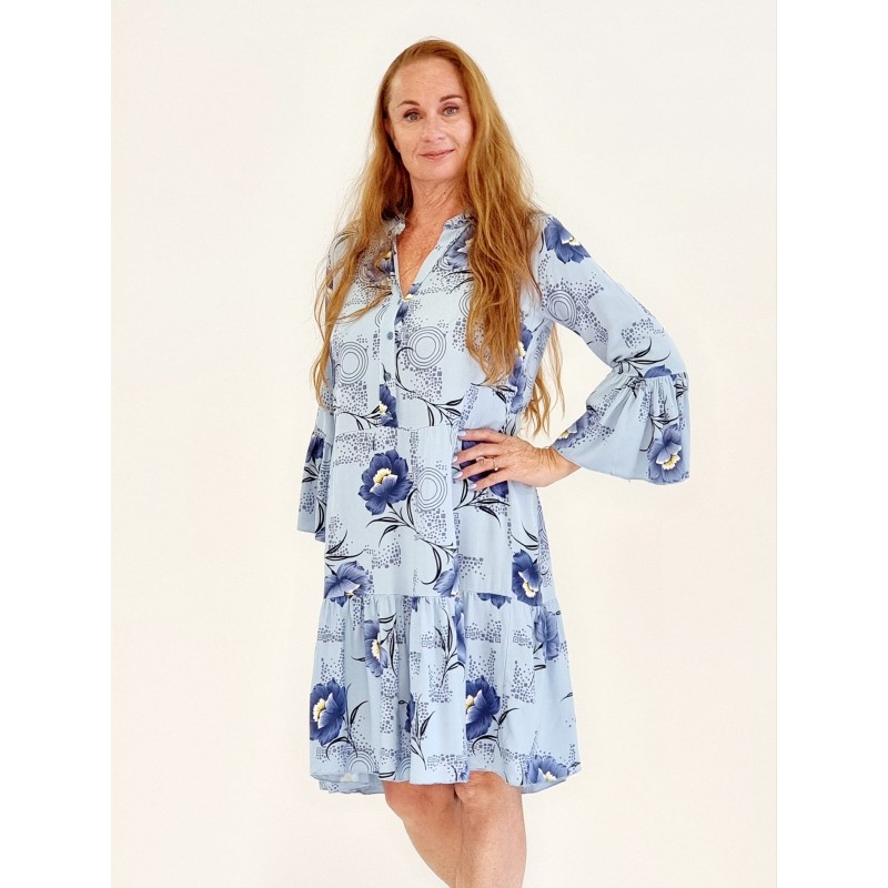 132555 Dress/Tunic with 4 buttons and flowers. Viscose. Blue